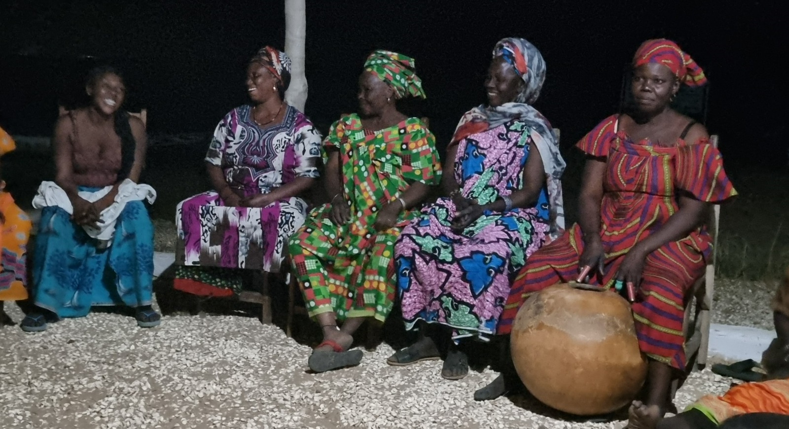 Campamento de Faoye. Después de una buena comida con deliciosos platos locales hubo discursos de agradecimiento por parte de las mujeres emprendedoras beneficiarias con música con calabazas de fondo.