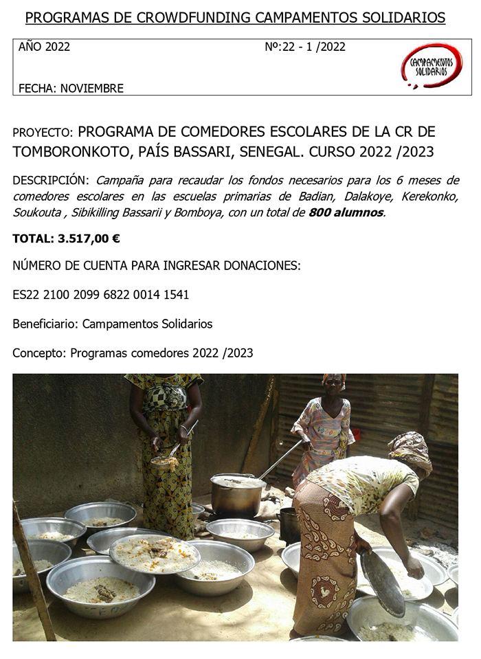 CROWDFUNDING PARA EL PROGRAMA DE COMEDORES ESCOLARES DEL CURSO 2023