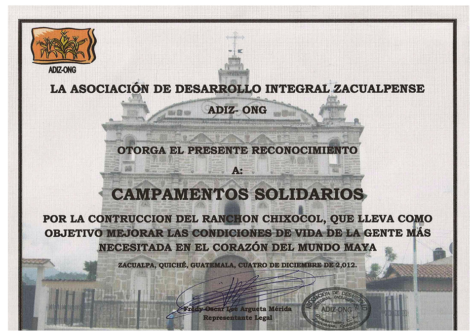 MAYA TERRITORY / Campamentos Solidarios in Guatemala RANCHÓN CHIXOCOL, ZACUALPA, QUICHÉ, GUATEMALA - Associated cooperation project: Supporting to NGO ADIZ |