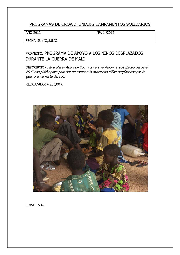 CF 1: Support program for displaced children during the war in Mali. COMPLETED [+]