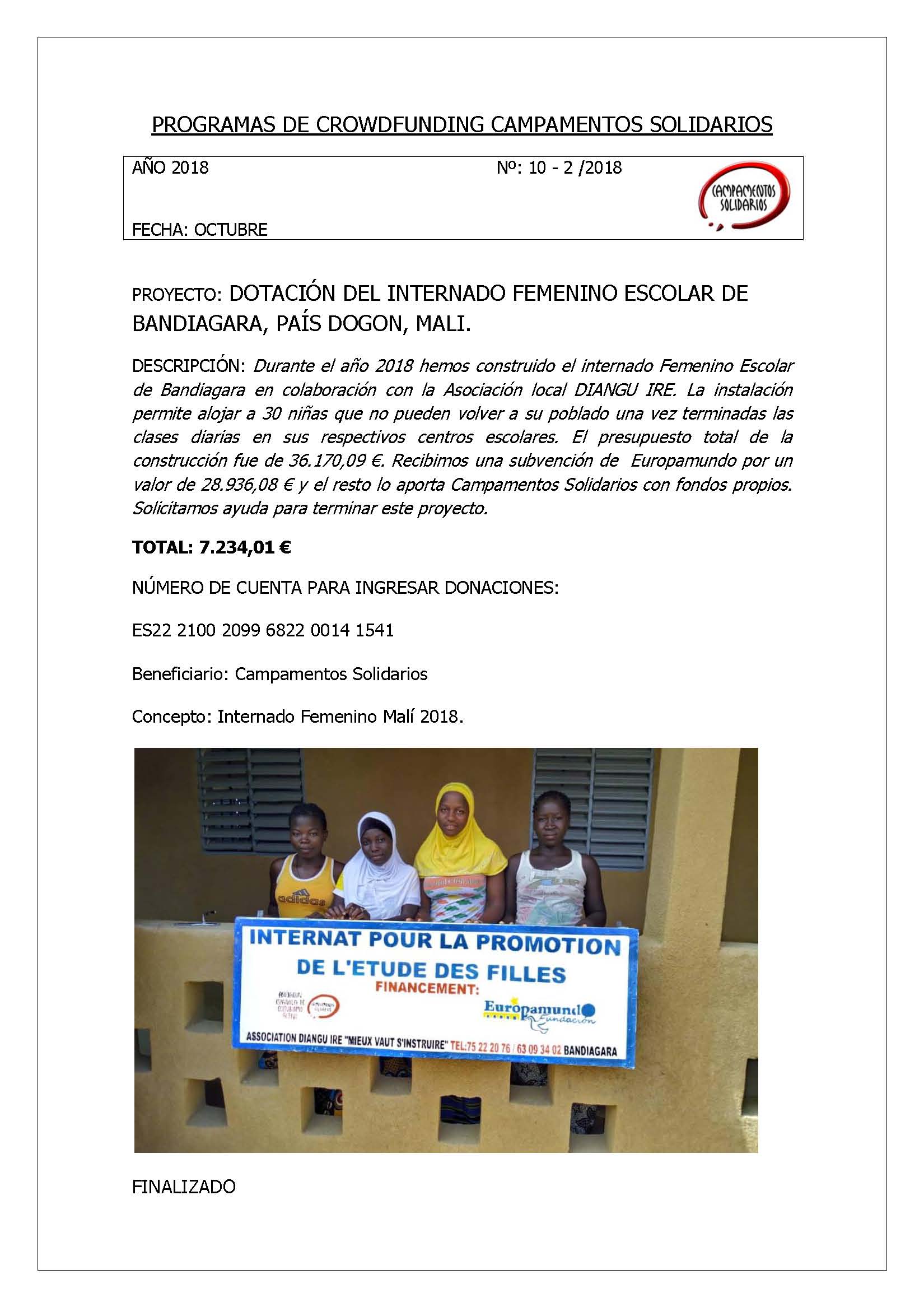 CF 10: Provision of the Female School Boarding School in Bandiagara, Dogon Country, Mali. COMPLETED [+]
