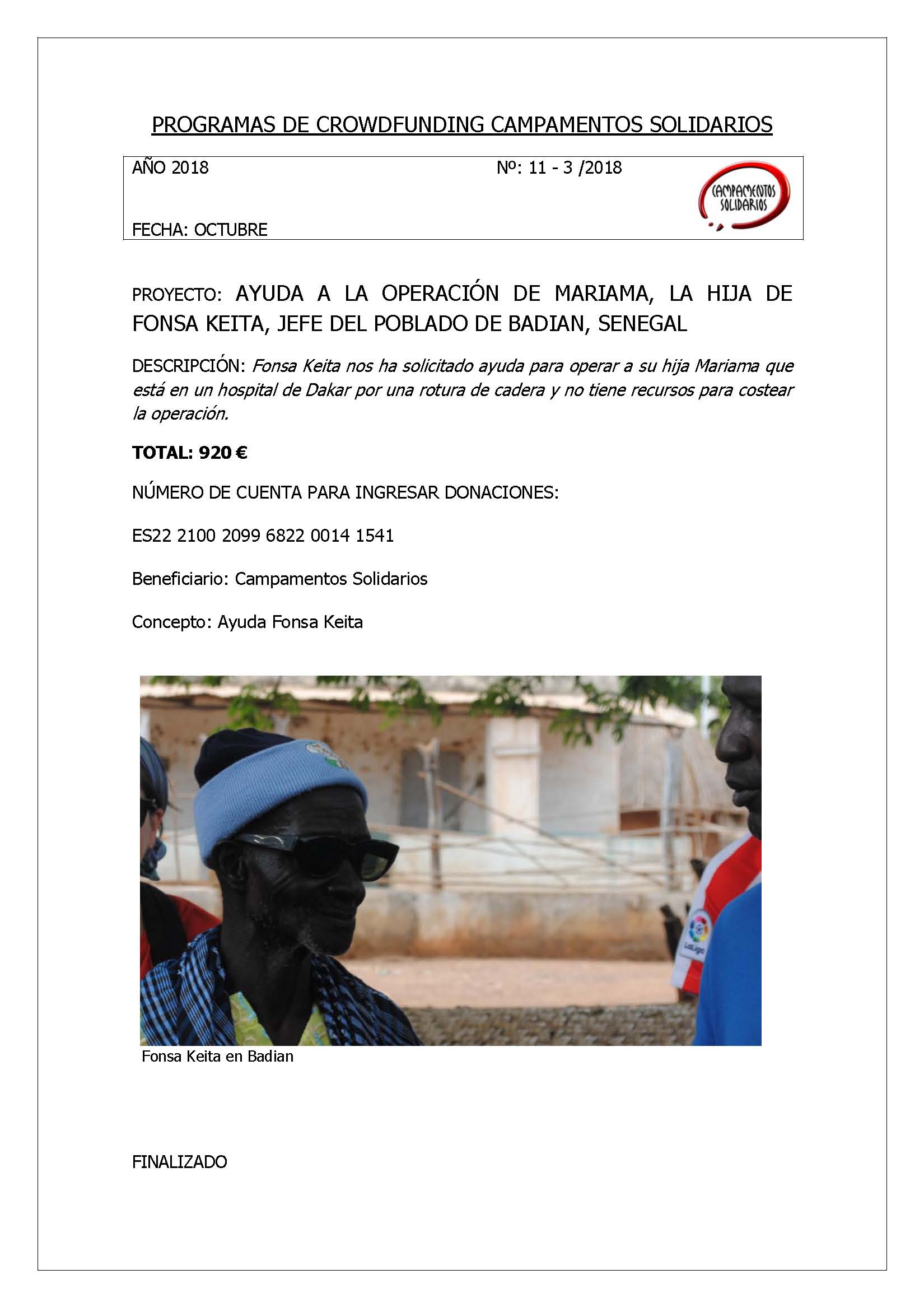 CF 11: Help for the surgical operation of Mariama, Fonsa Keita's daughter, head of the Badian village. COMPLETED [+]