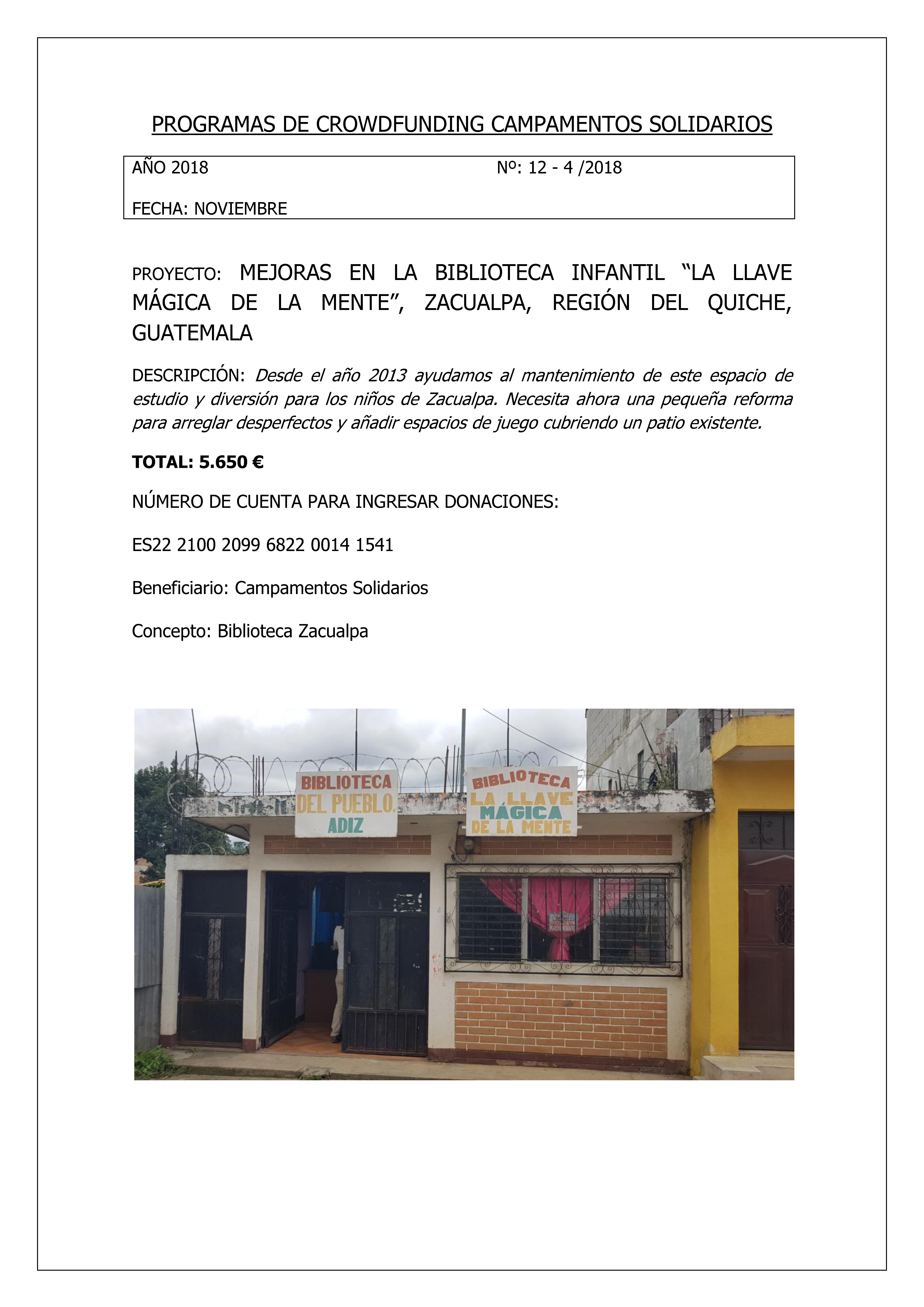 CF 12: Improvements in the Children's Library "La Llave Mágica de la Mente", Zacualpa, Quiche Region, Guatemala COMPLETED [+]