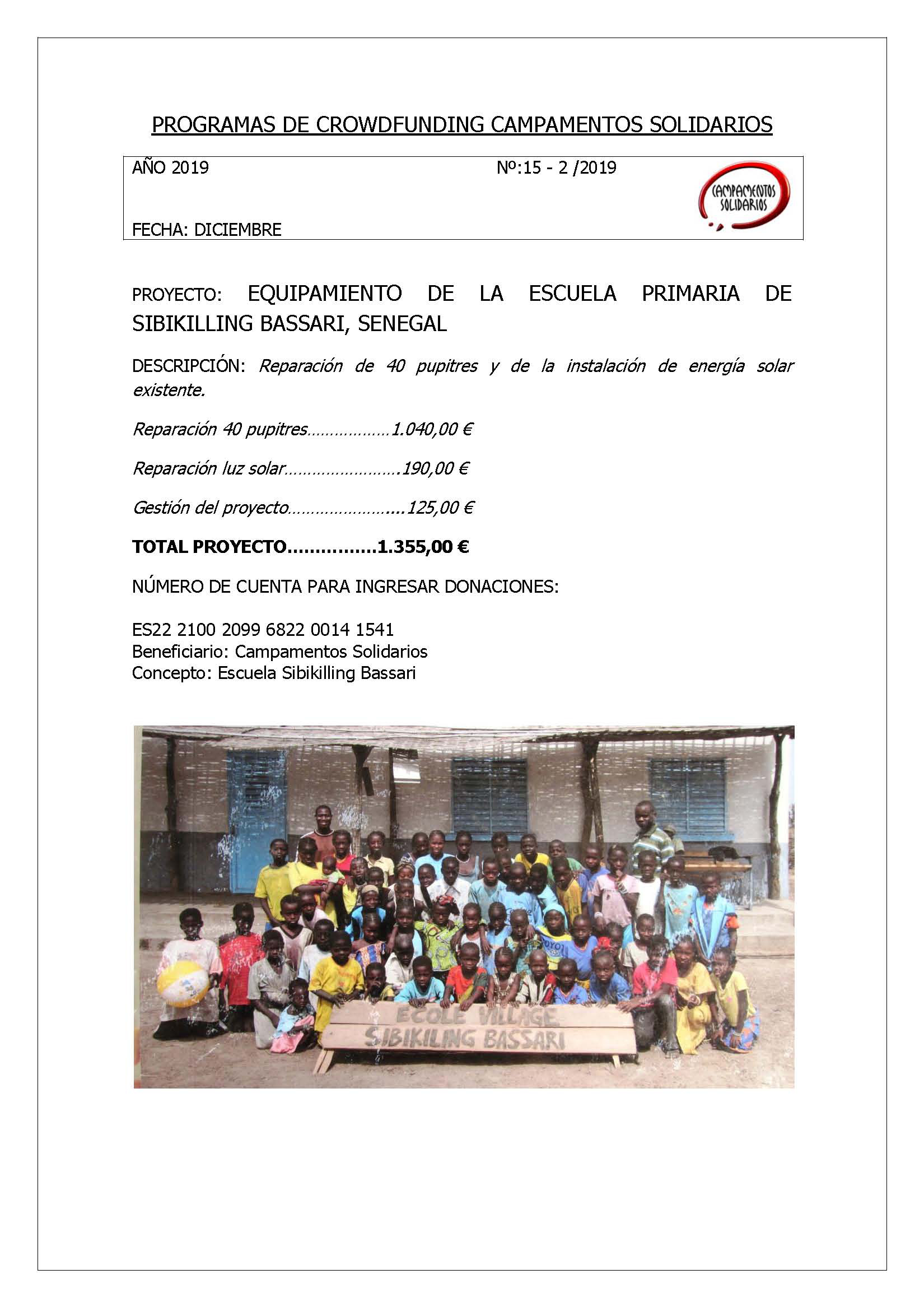 CF 15: Equipment of the Primary School of Sibikilling Bassari, Senegal COMPLETED [+]