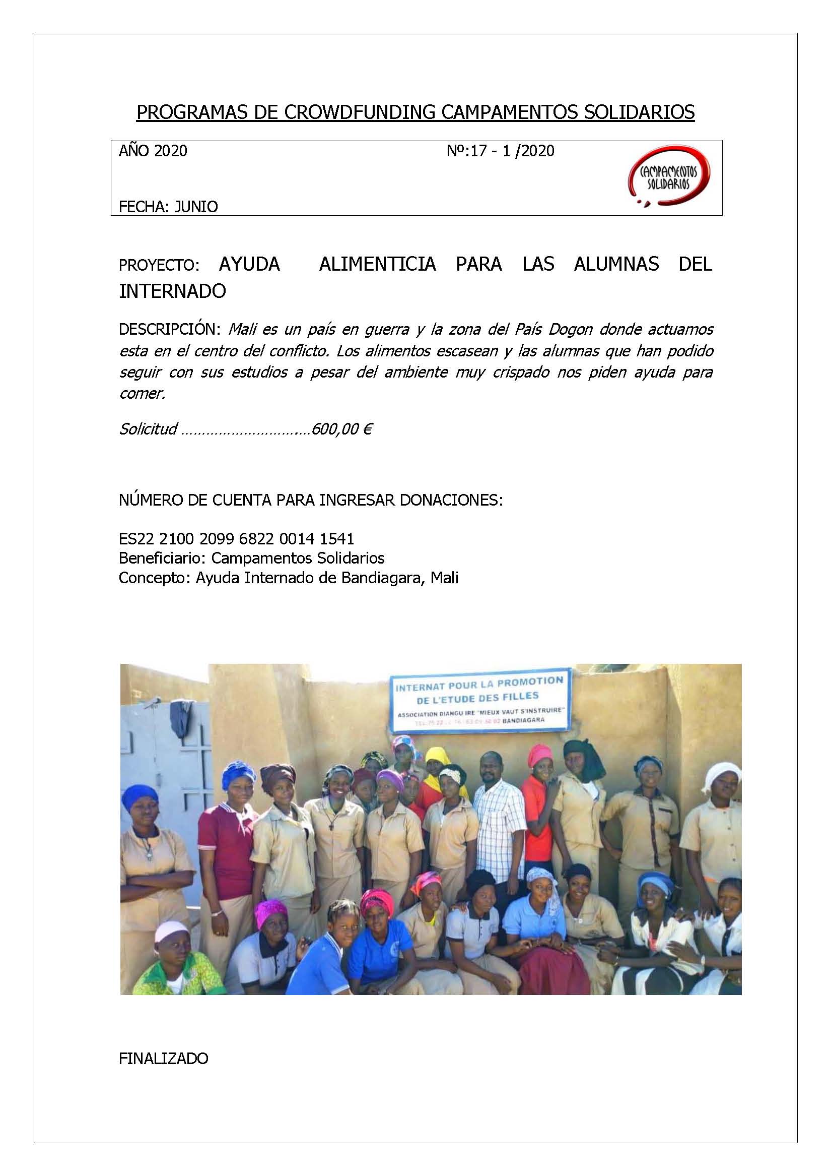 CF 17: Food aid for students at the Bandiagara Boarding School, Mali COMPLETED [+]