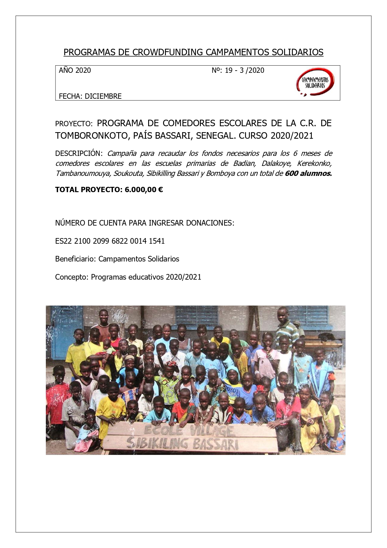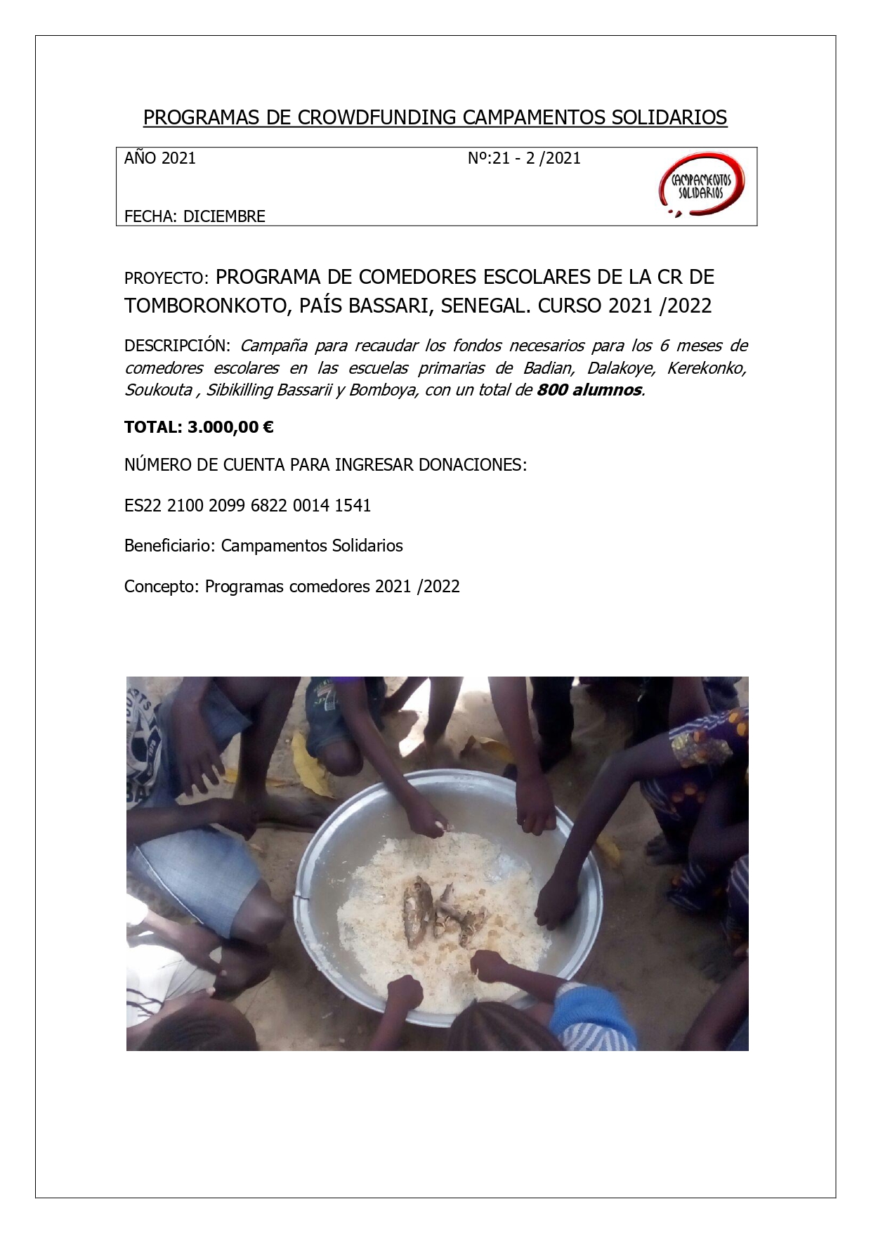 CF 21: Schools canteen program in the Rural Community of Tomboronkoto, Senegal COMPLETED [+]