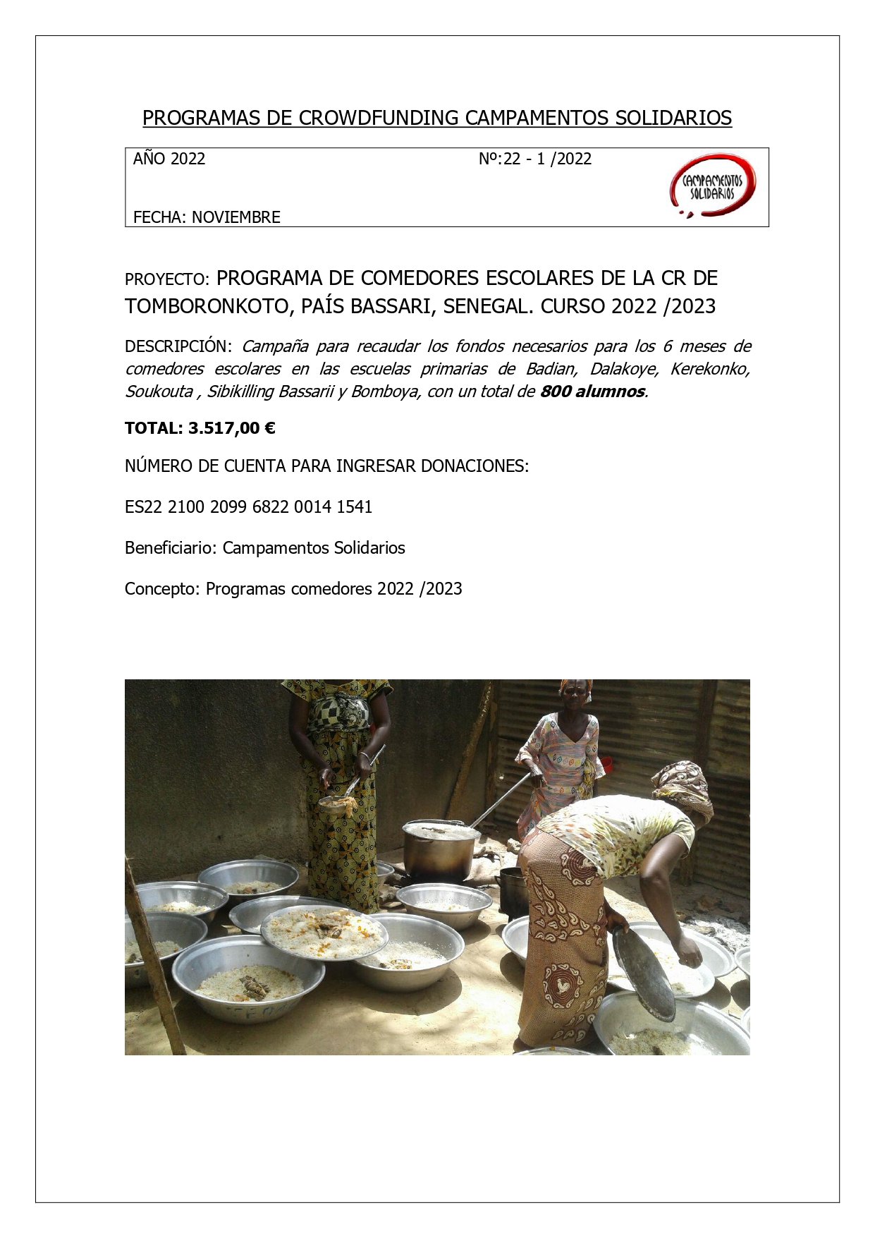 CF 22: Schools canteen program in the Rural Community of Tomboronkoto, Senegal COMPLETED [+]