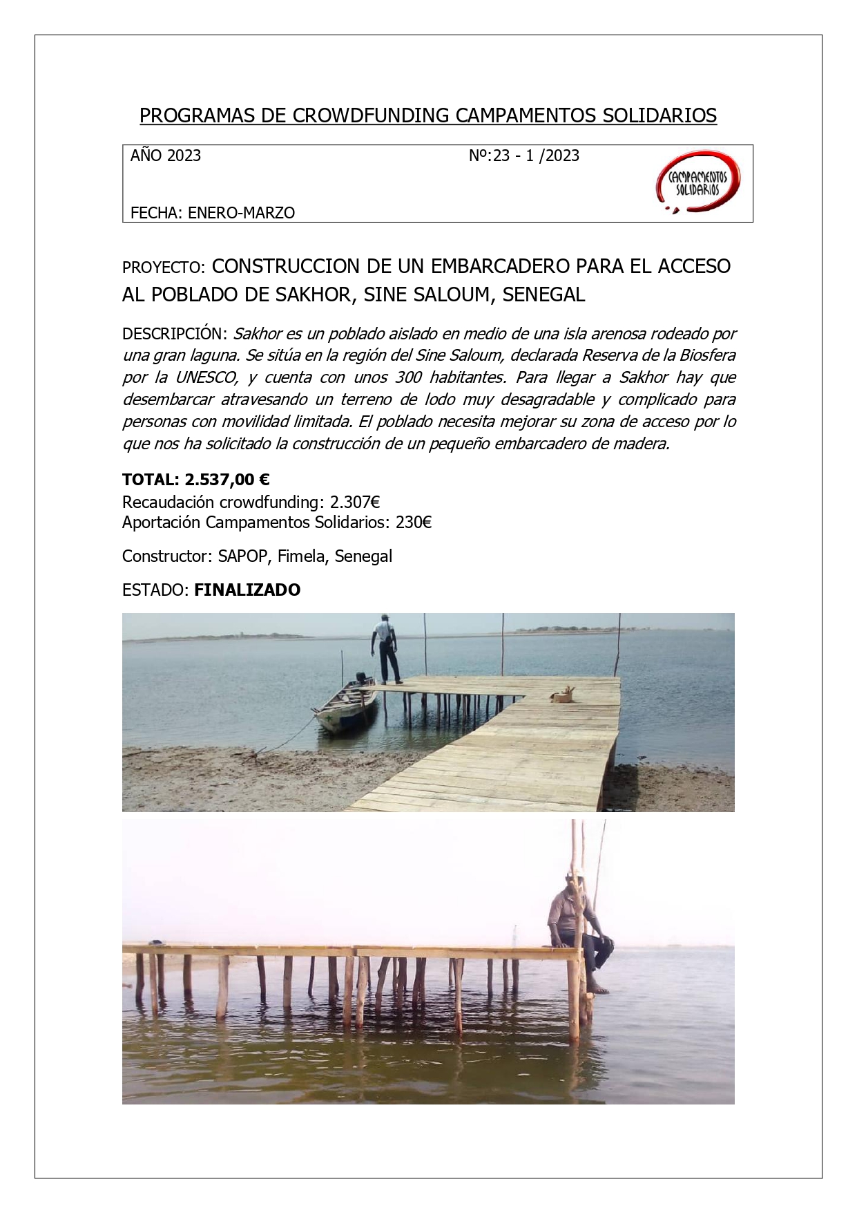 CF 23: Construction of a pier to access the town of Sakhor, Sine Saloum, Senegal COMPLETED [+]