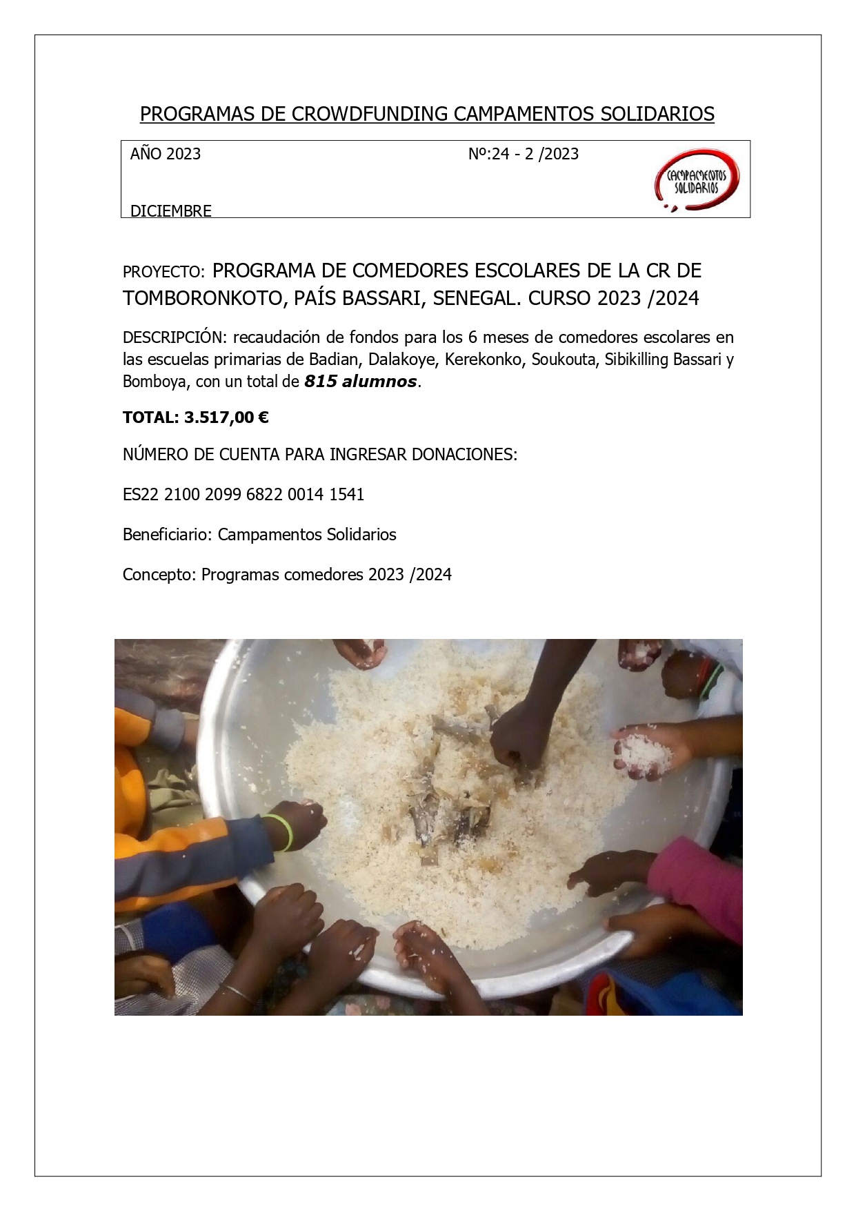 CF 24: Schools canteen program in the Rural Community of Tomboronkoto, Senegal COMPLETED [+]