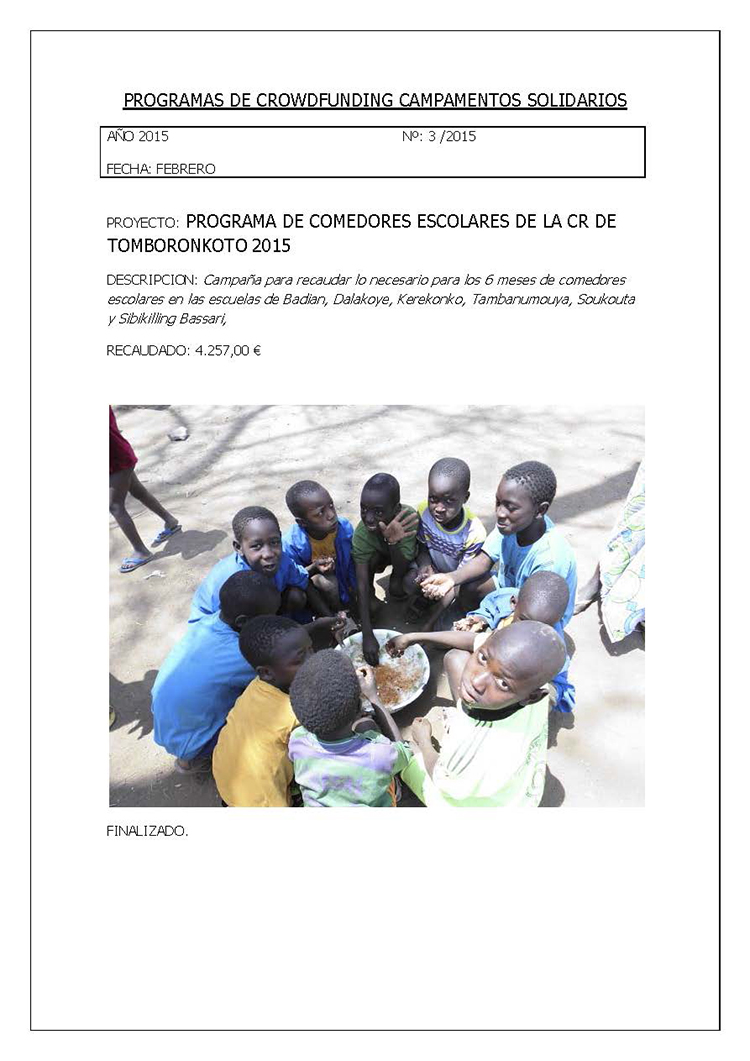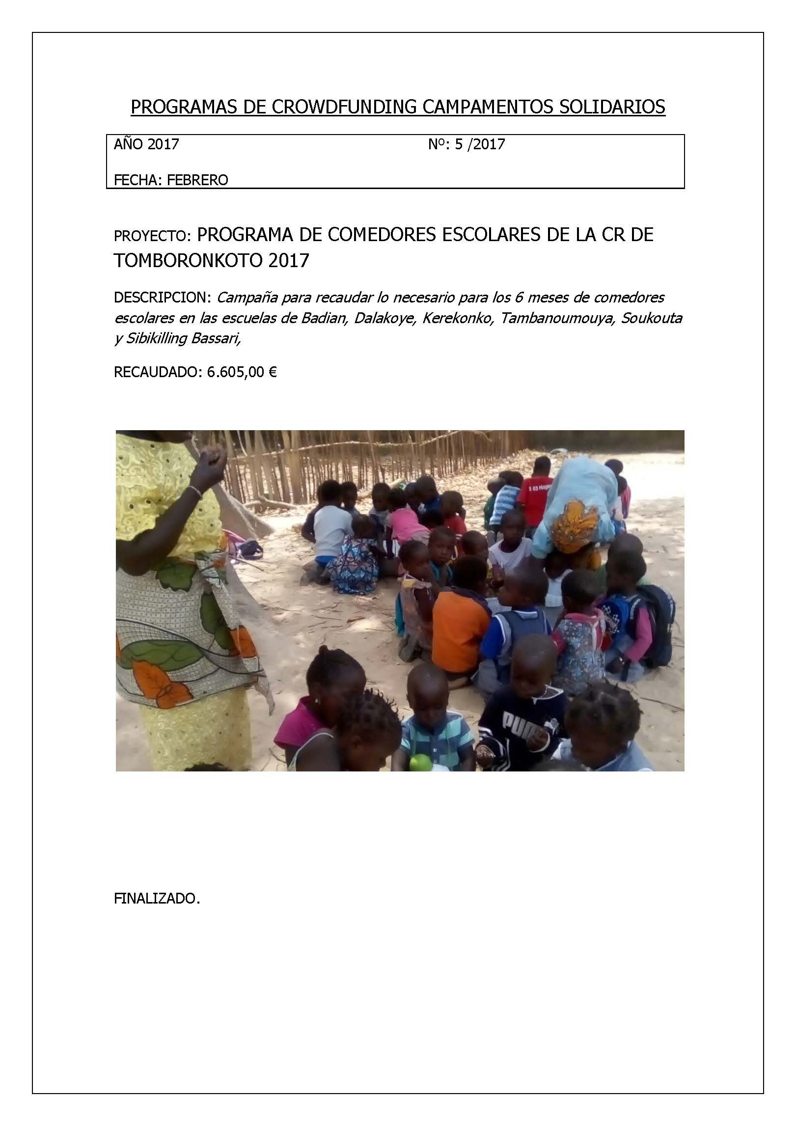 CF 5: Schools canteen program in the Rural Community of Tomboronkoto. COMPLETED [+]