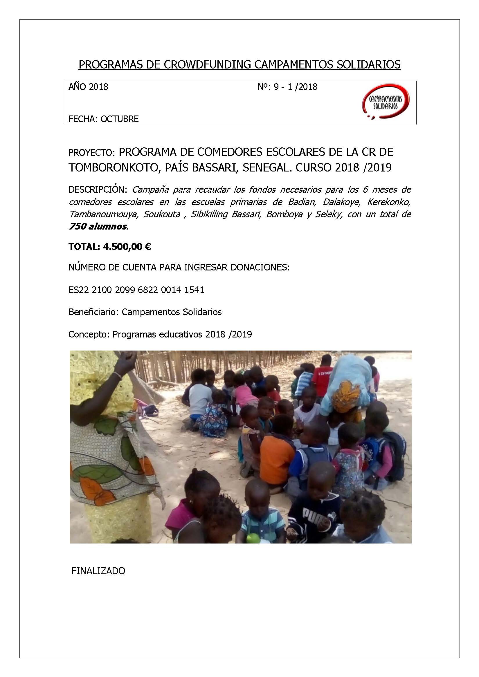 CF 19: Schools canteen program in the Rural Community of Tomboronkoto, Senegal COMPLETED [+]