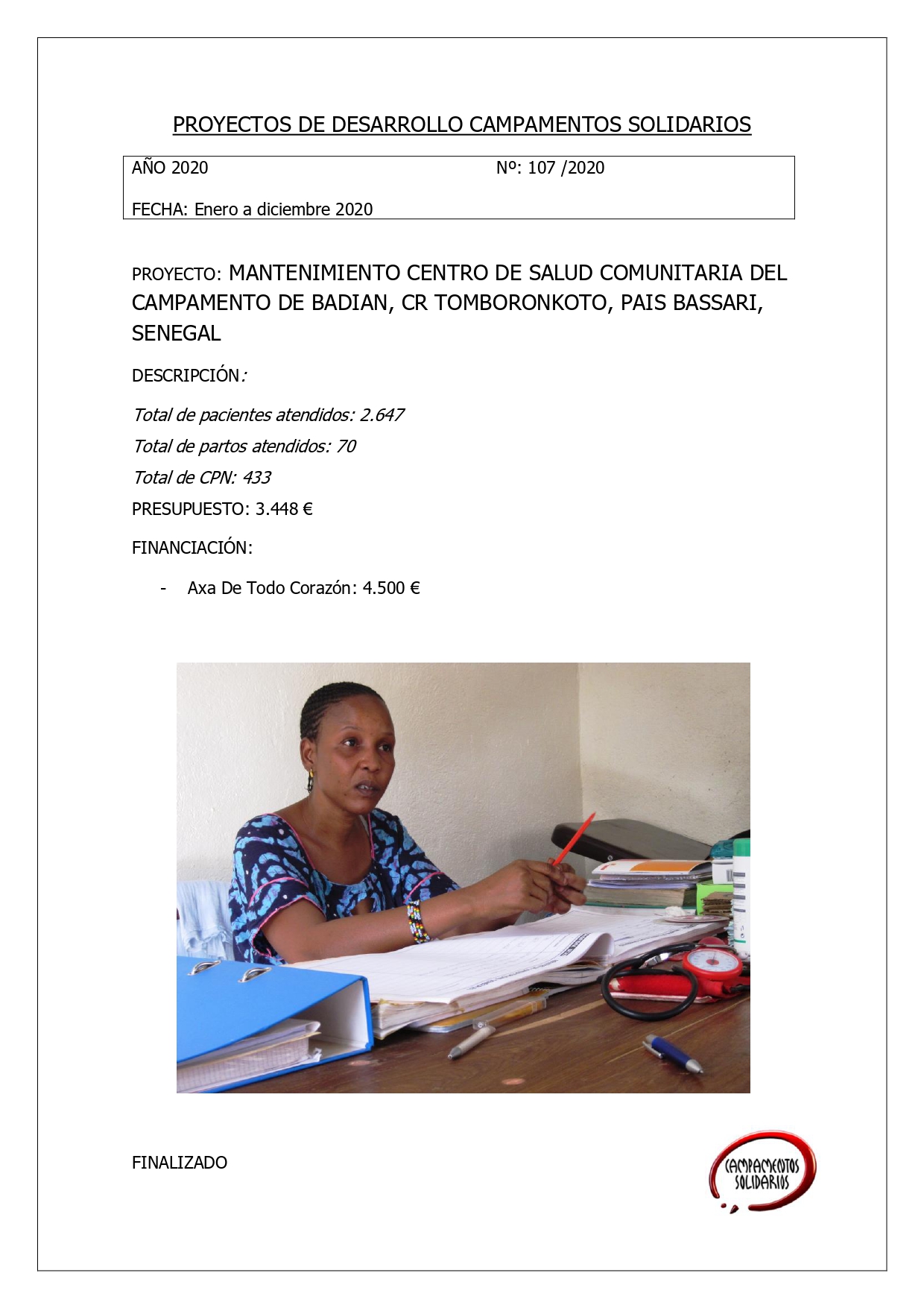 P 107: Mantenimiento del Centro de Salud Comunitaria del Campamento de Badian, País Bassari, Senegal [+]
