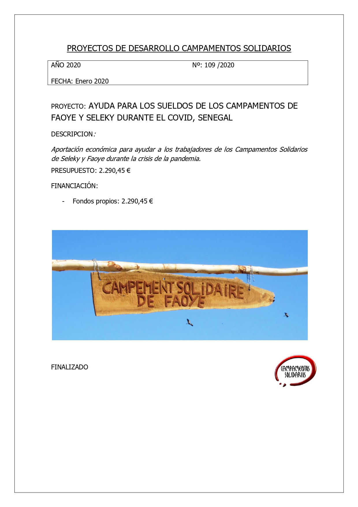 P 109: Ayuda para los sueldos de los trabajadores de los Campamentos de Seleky y Faoye, Senegal [+]