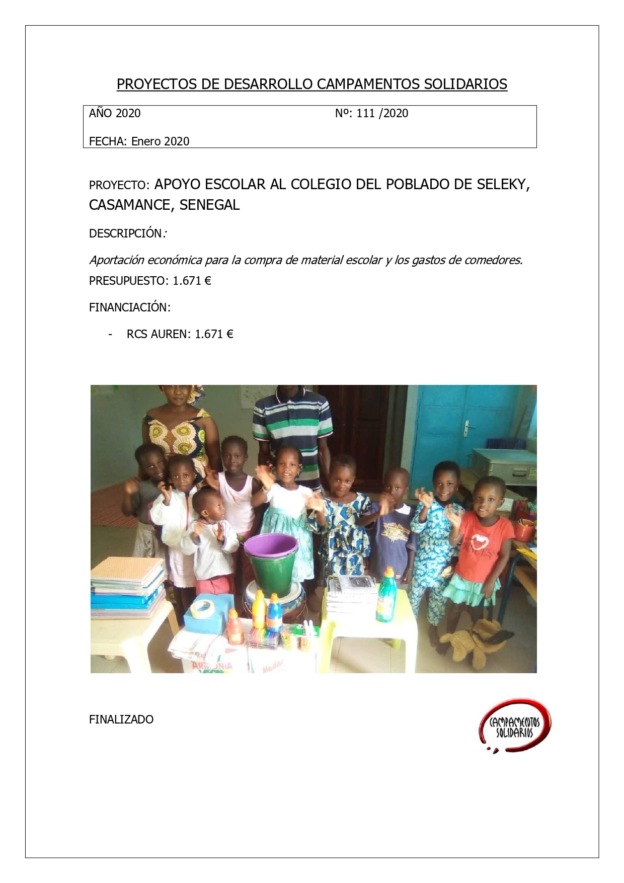 P 140: Material escolar y comedores para la escuela de Seleky, Casamance, Senegal