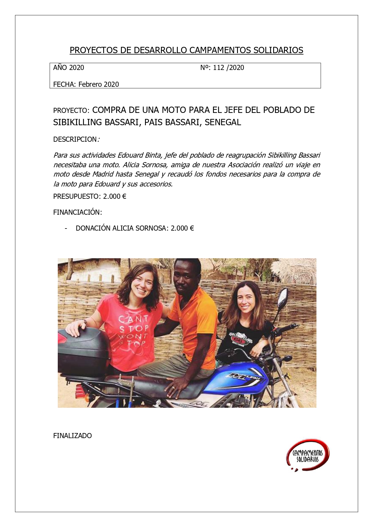 P 112: Compra de una moto para el jefe del poblado Sibikilling Bassari, País Bassari, Senegal [+]
