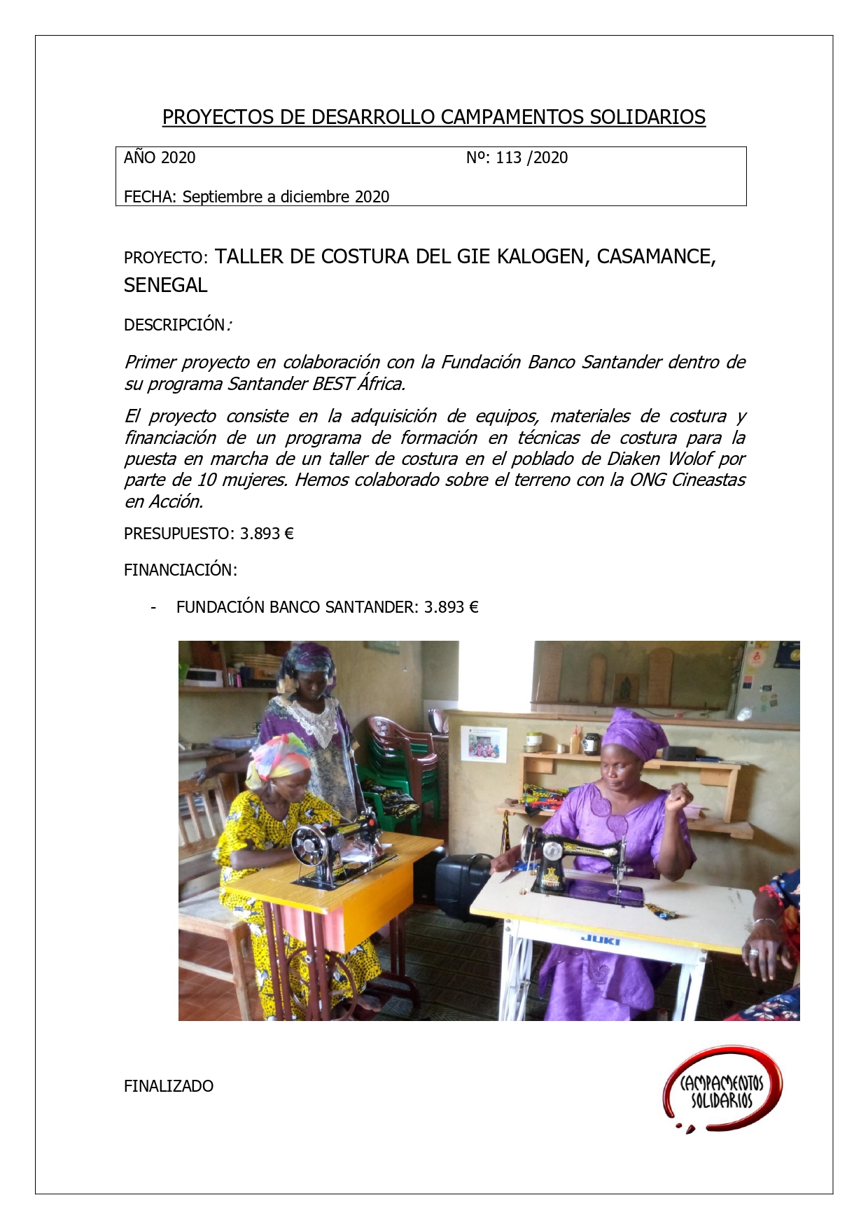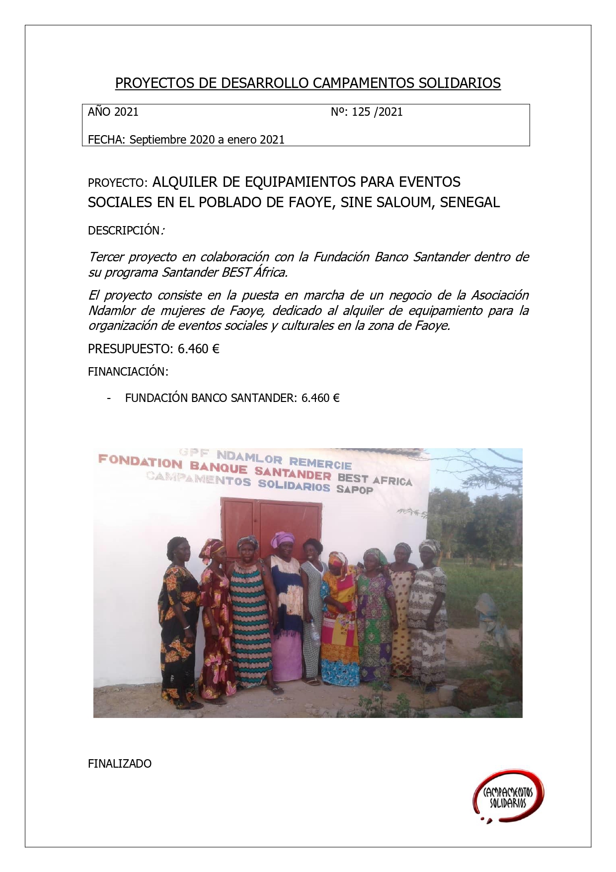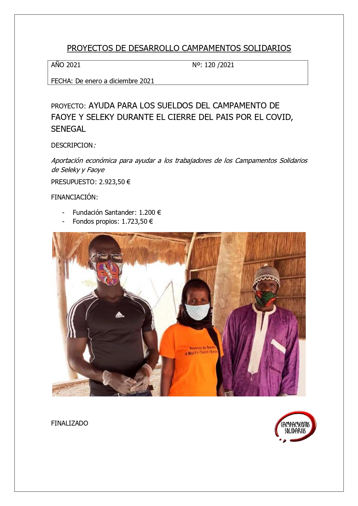 P 120: Ayuda para los sueldos de los trabajadores de los Campamentos de Seleky y Faoye, Senegal [+]