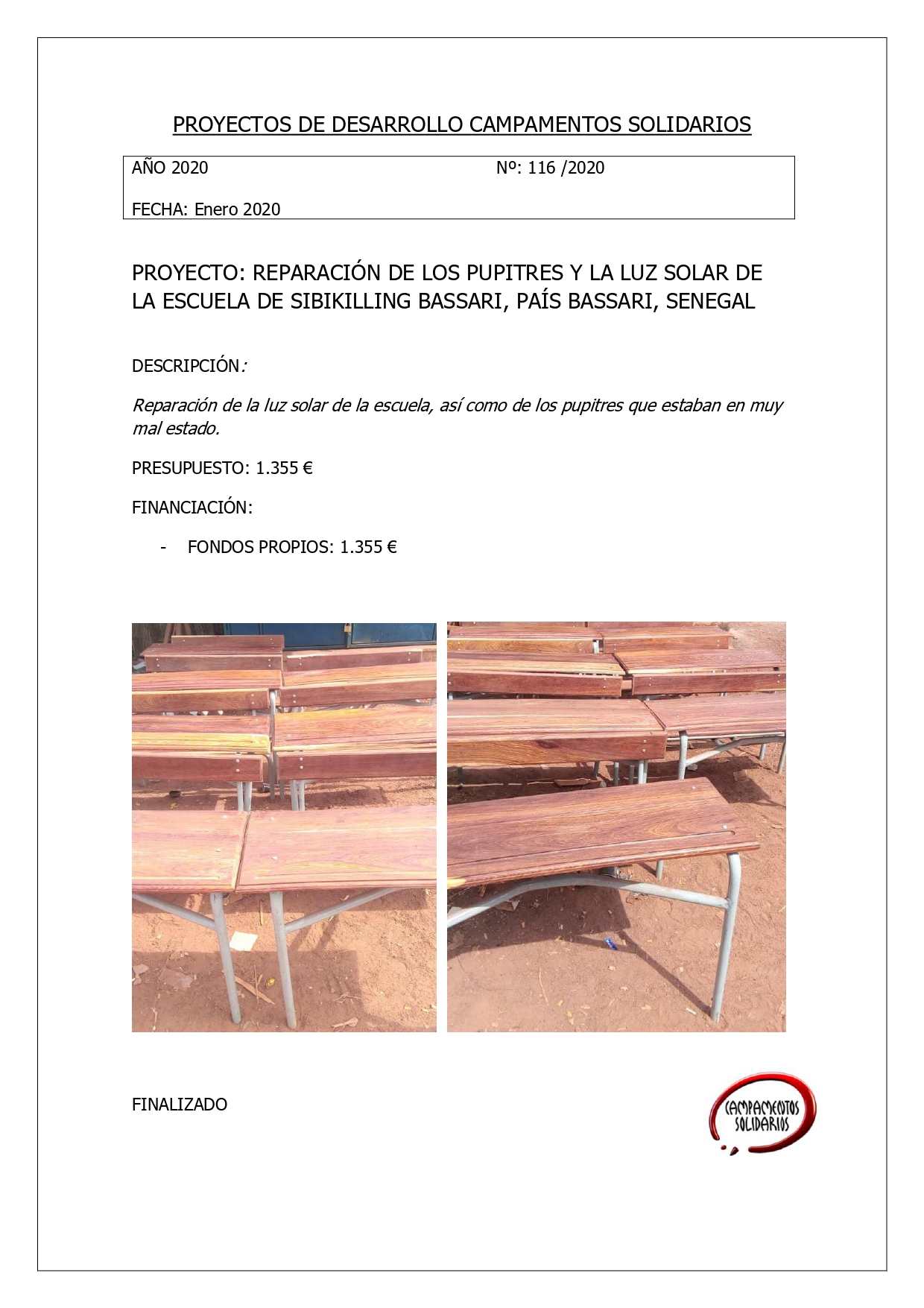 P 116: Reparación de los pupitres y la luz solar de la escuela de Sibikilling Basari, País Basari, Senegal [+]