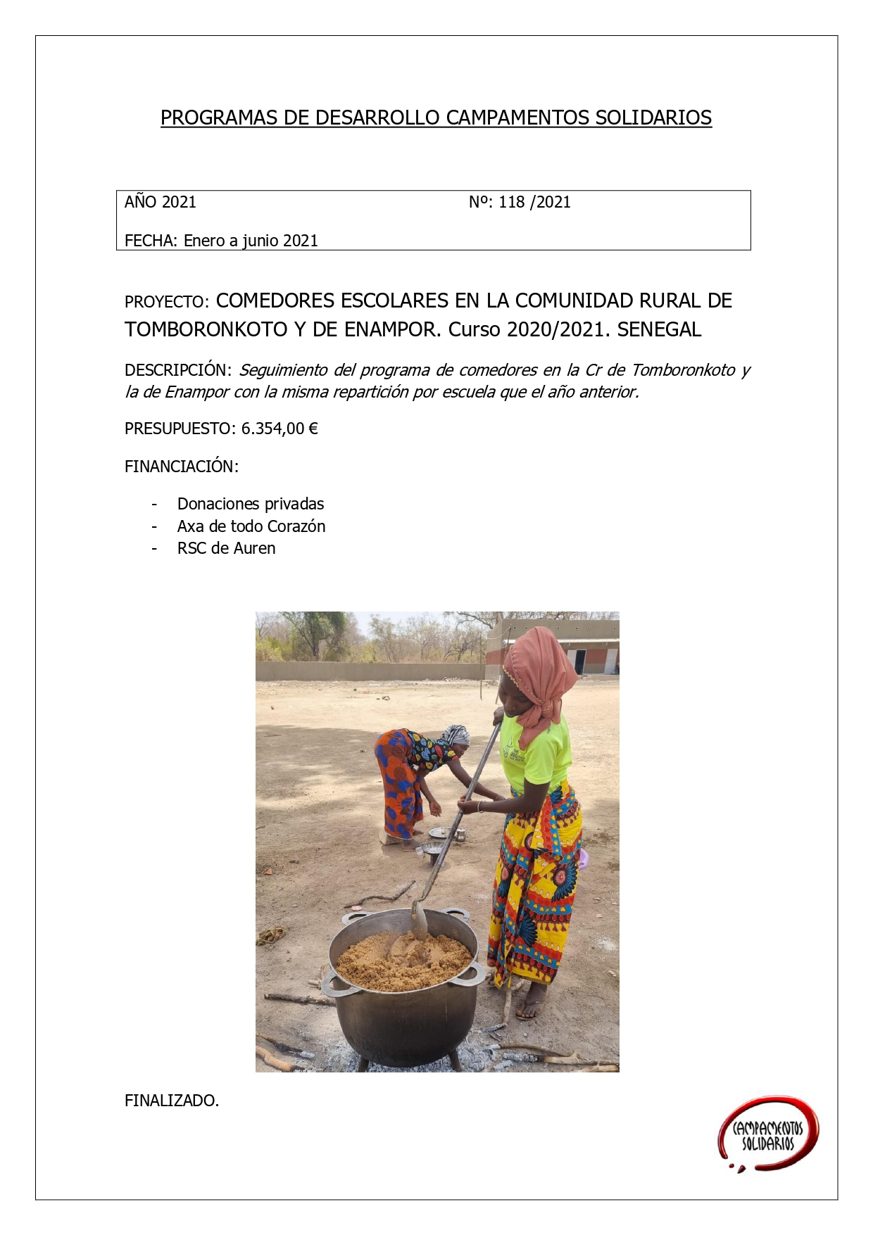 P 118: Comedores escolares en Comunidad Rural de Tomboronkoto, País Bassari, Senegal. Curso 2020/2021 [+]