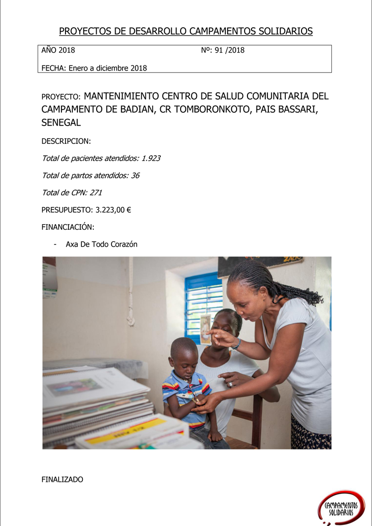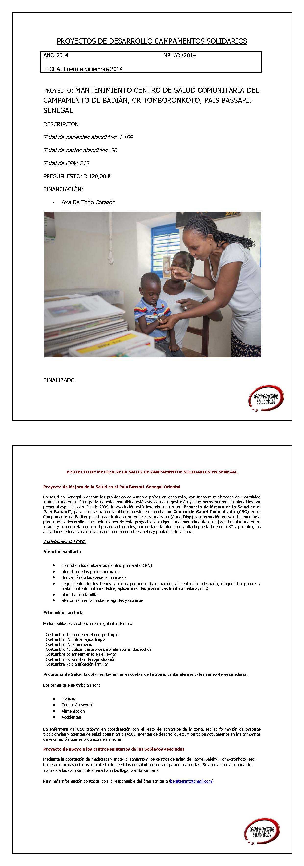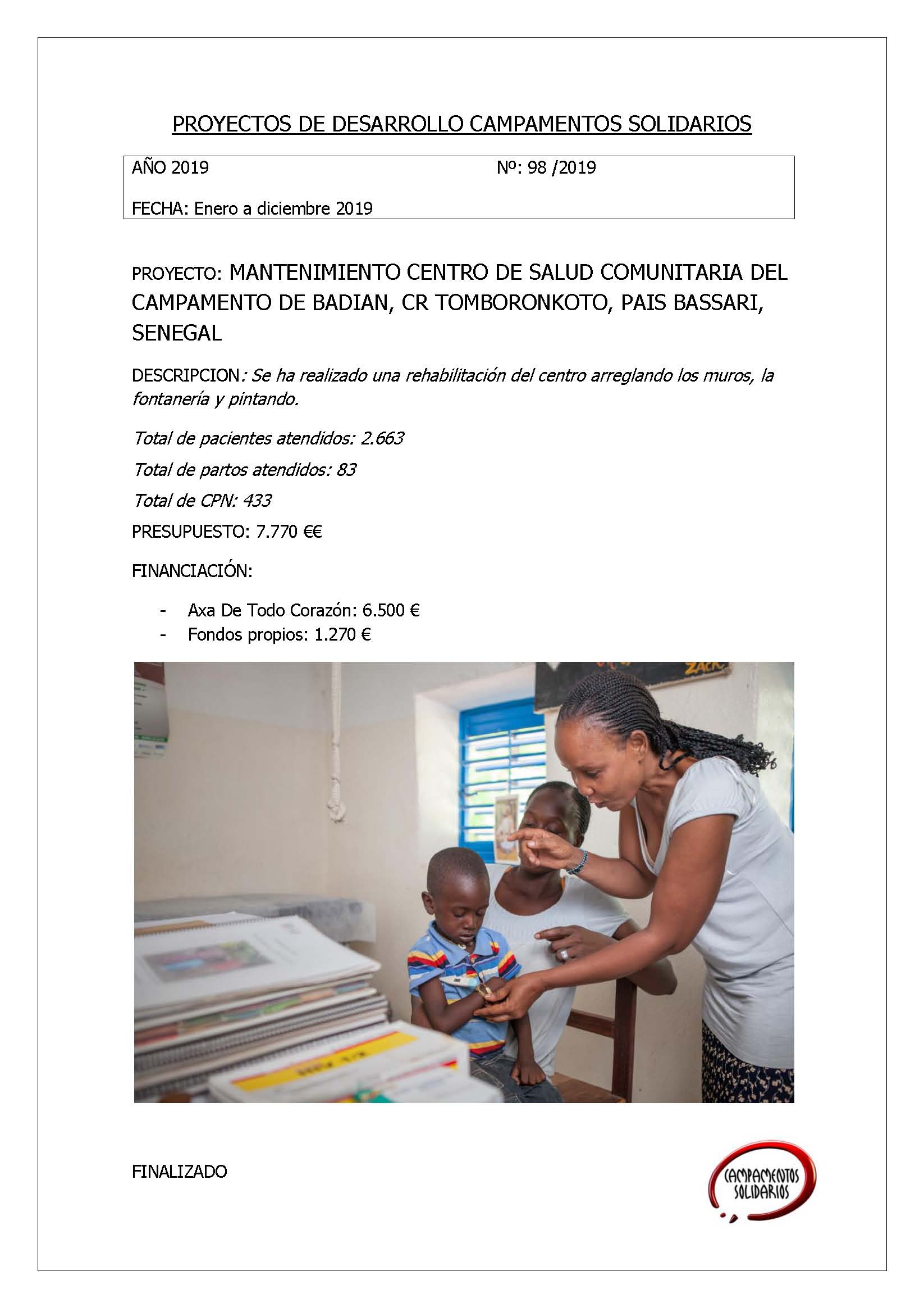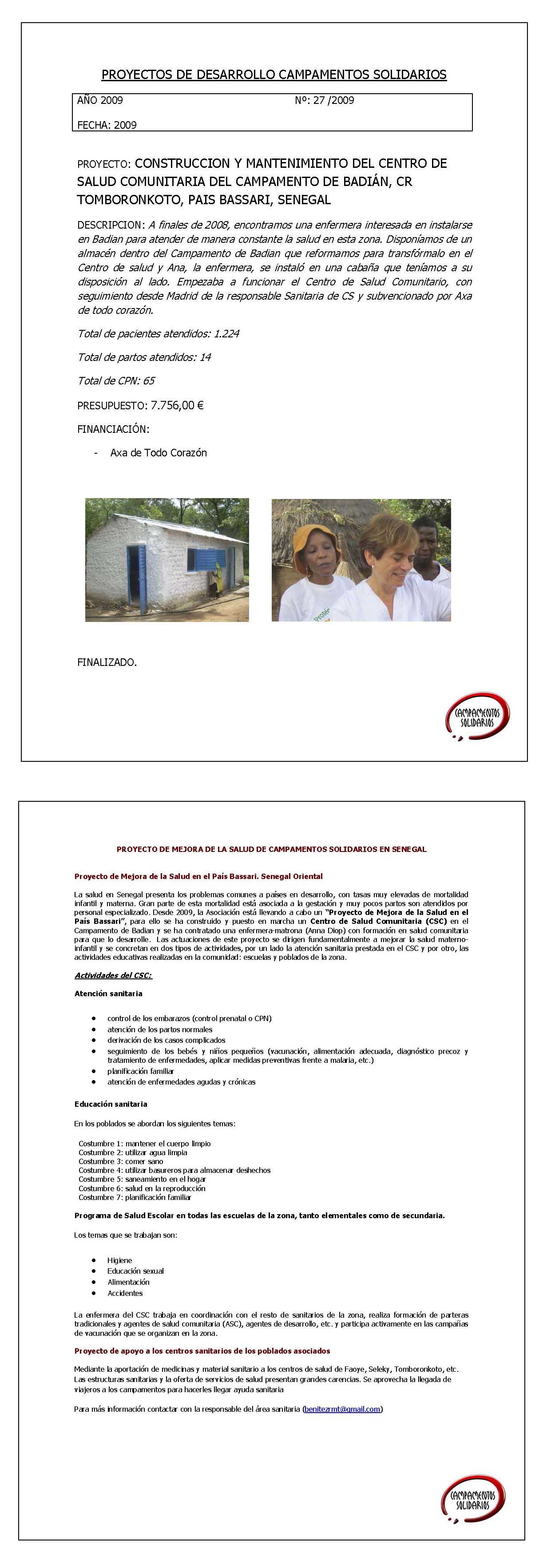 P 27: Construcción y Mantenimiento Centro Salud Comunitaria del Campamento de Badian, C.R. Tomboronkoto, País Bassari, Senegal [+]