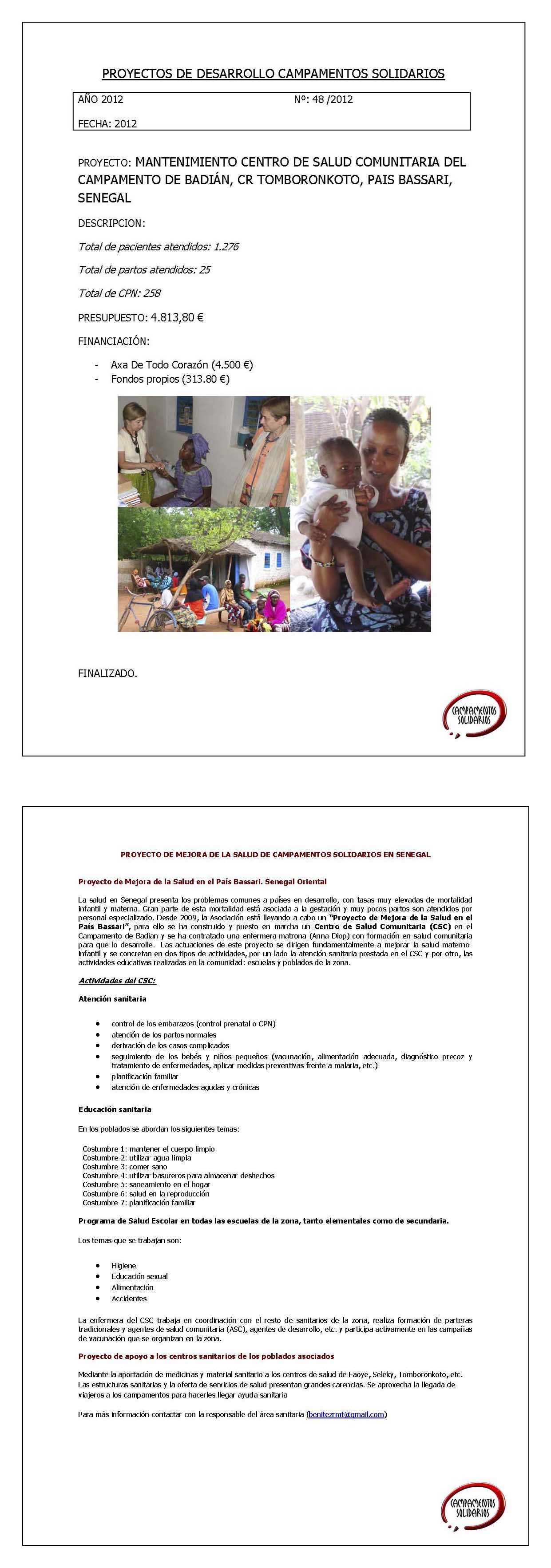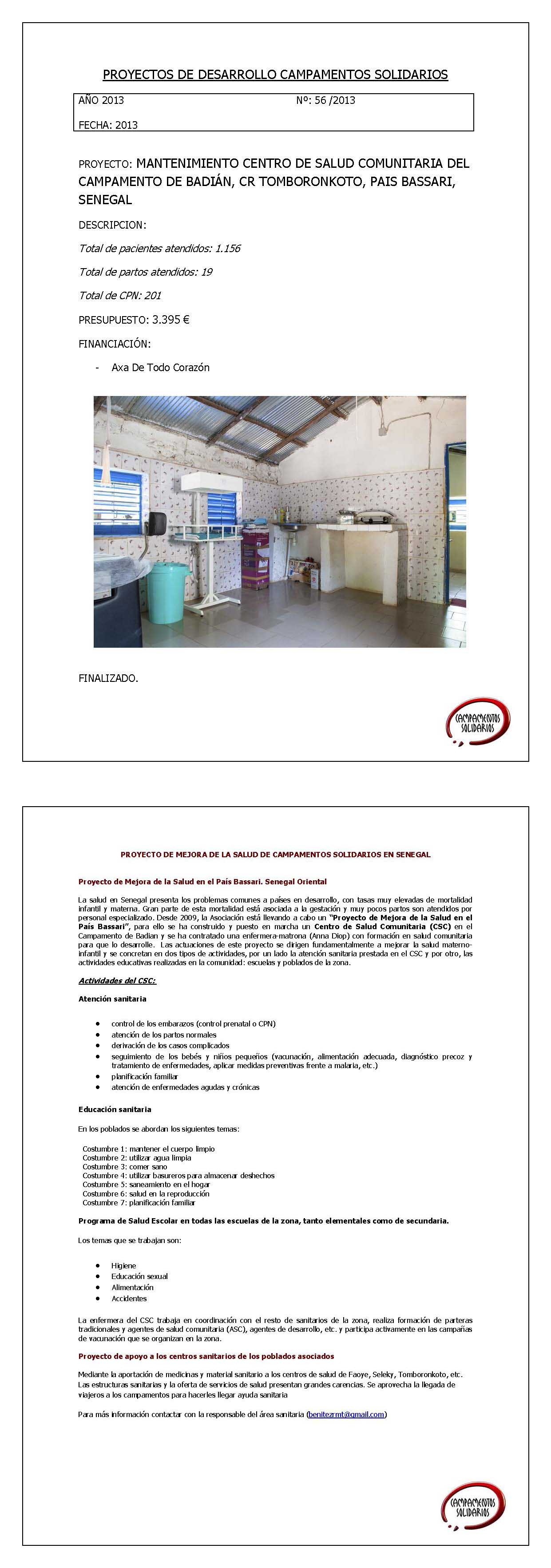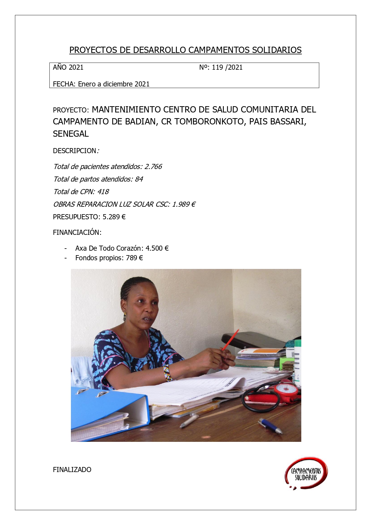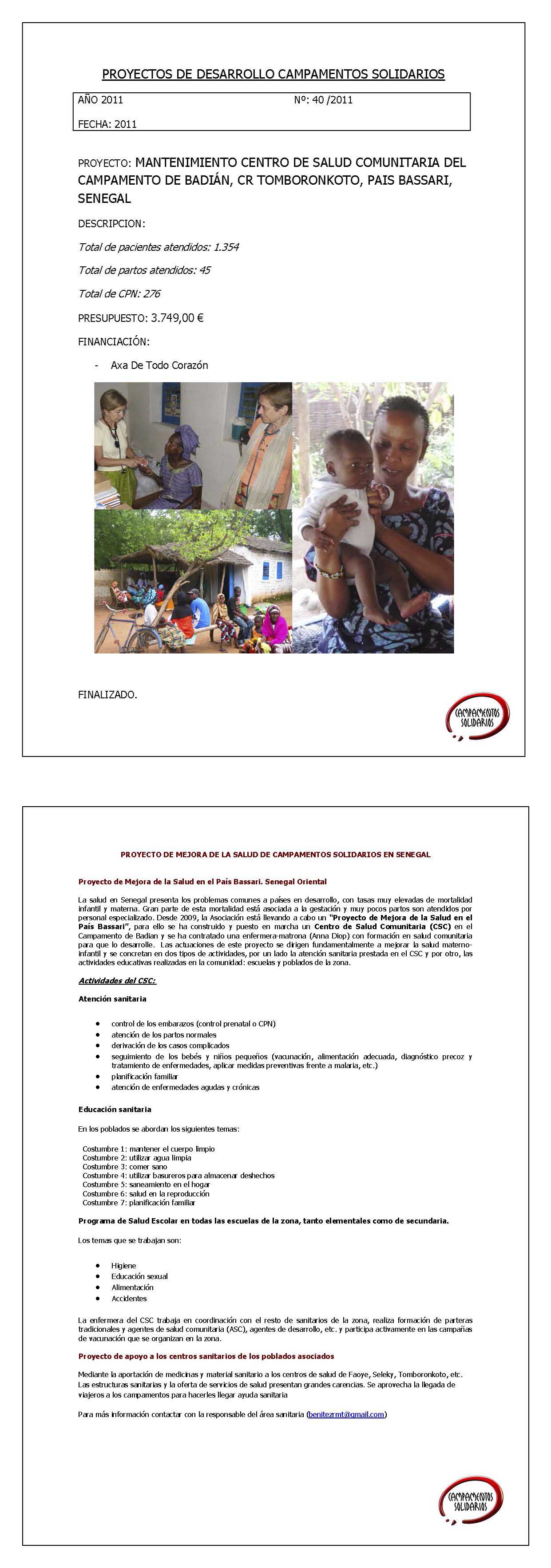 P 27: Construcción y Mantenimiento Centro Salud Comunitaria del Campamento de Badian, C.R. Tomboronkoto, País Bassari, Senegal [+]