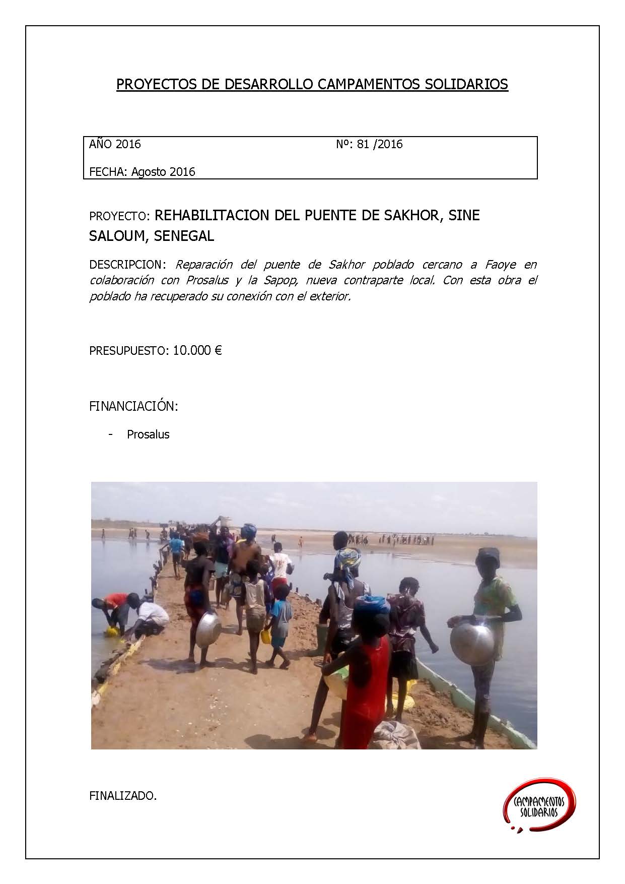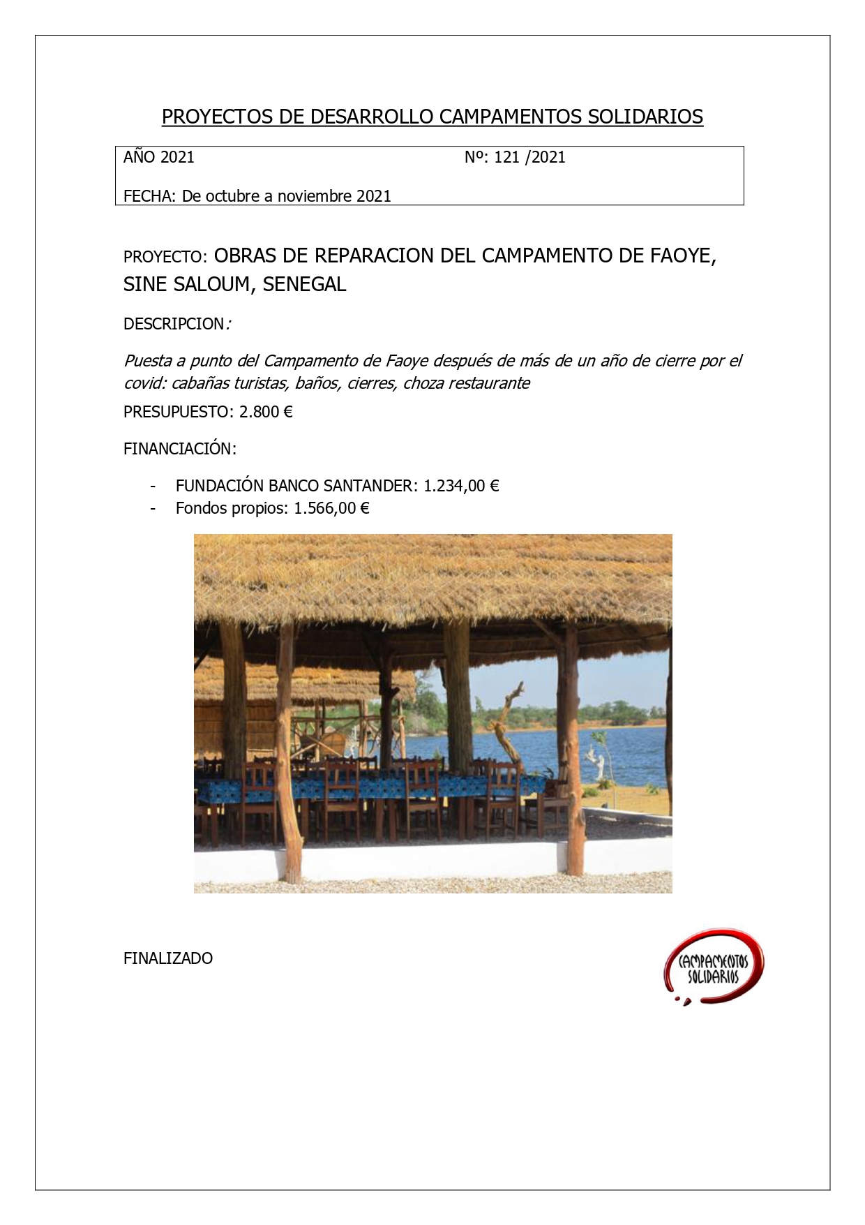 P 121: Obras de mantenimiento y reparación del Campamento de Faoye, Sine Saloum, Senegal [+]