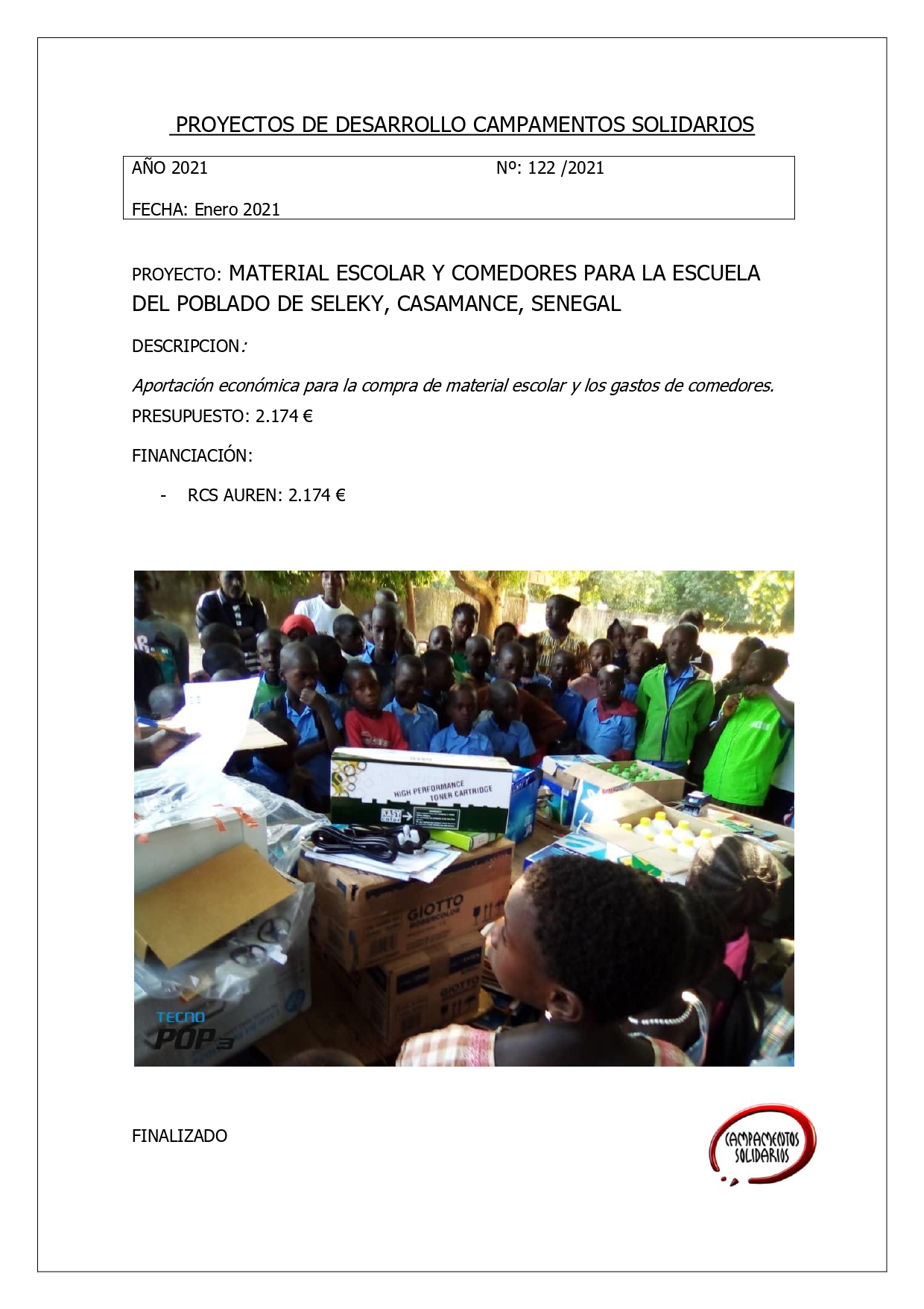 P 122: Material escolar y comedores para la escuela de Seleky, Casamance, Senegal [+]