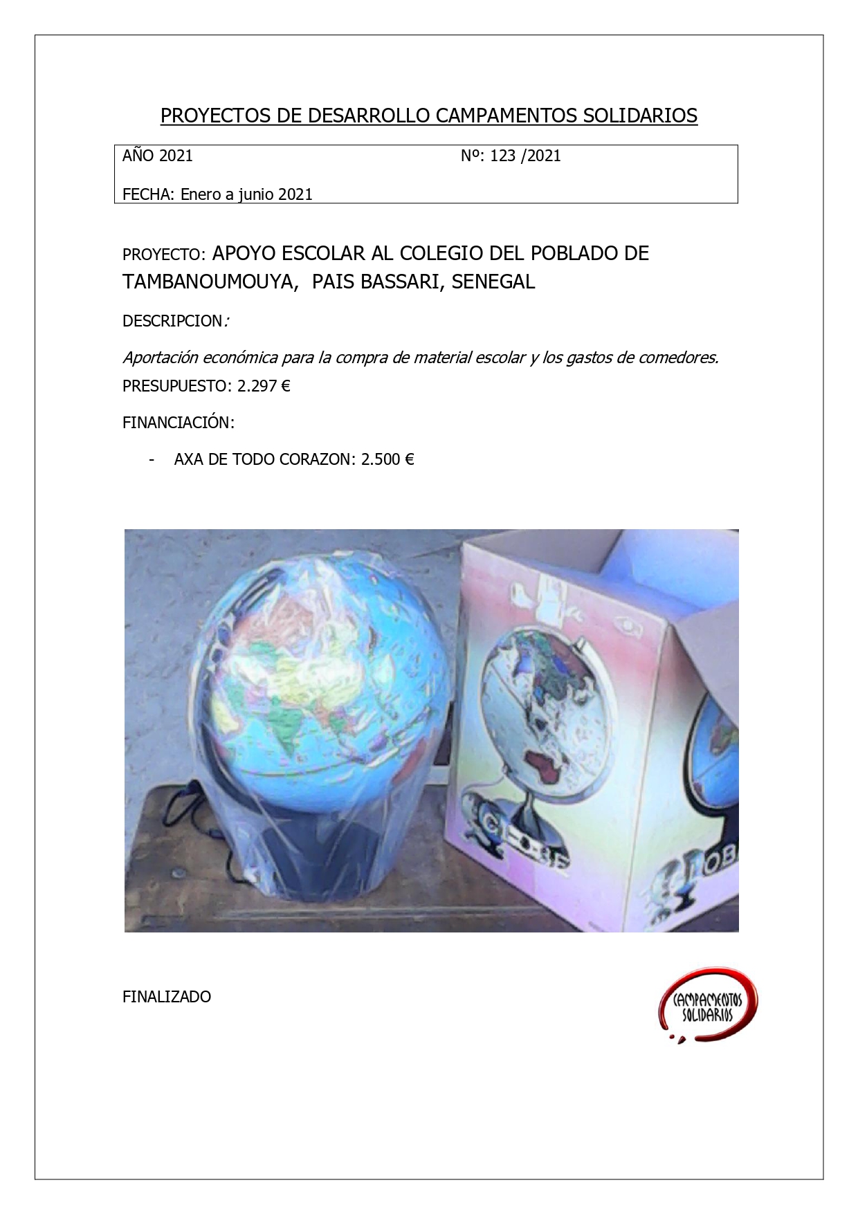 P 123: Apoyo escolar para la escuela de Tambanoumouya, País Basari, Senegal [+]