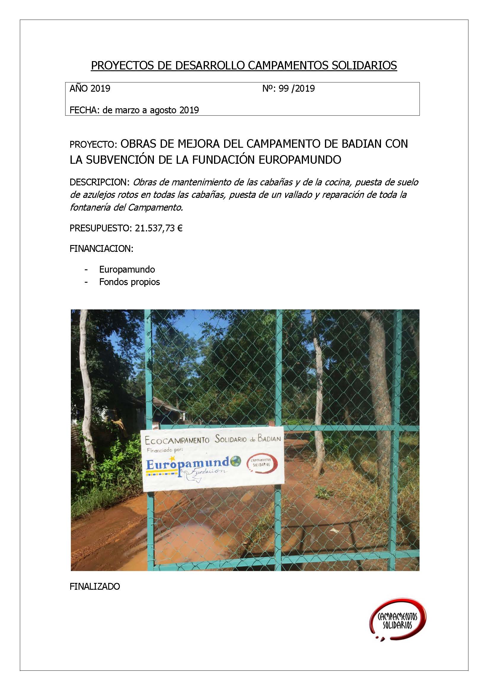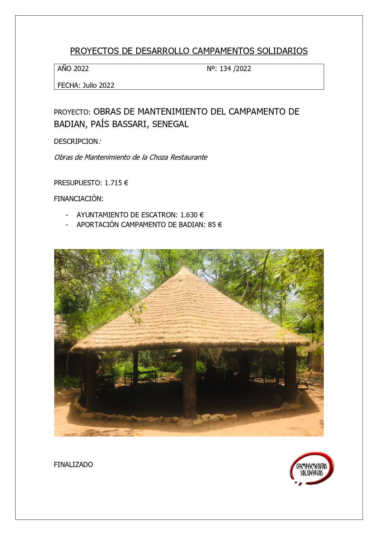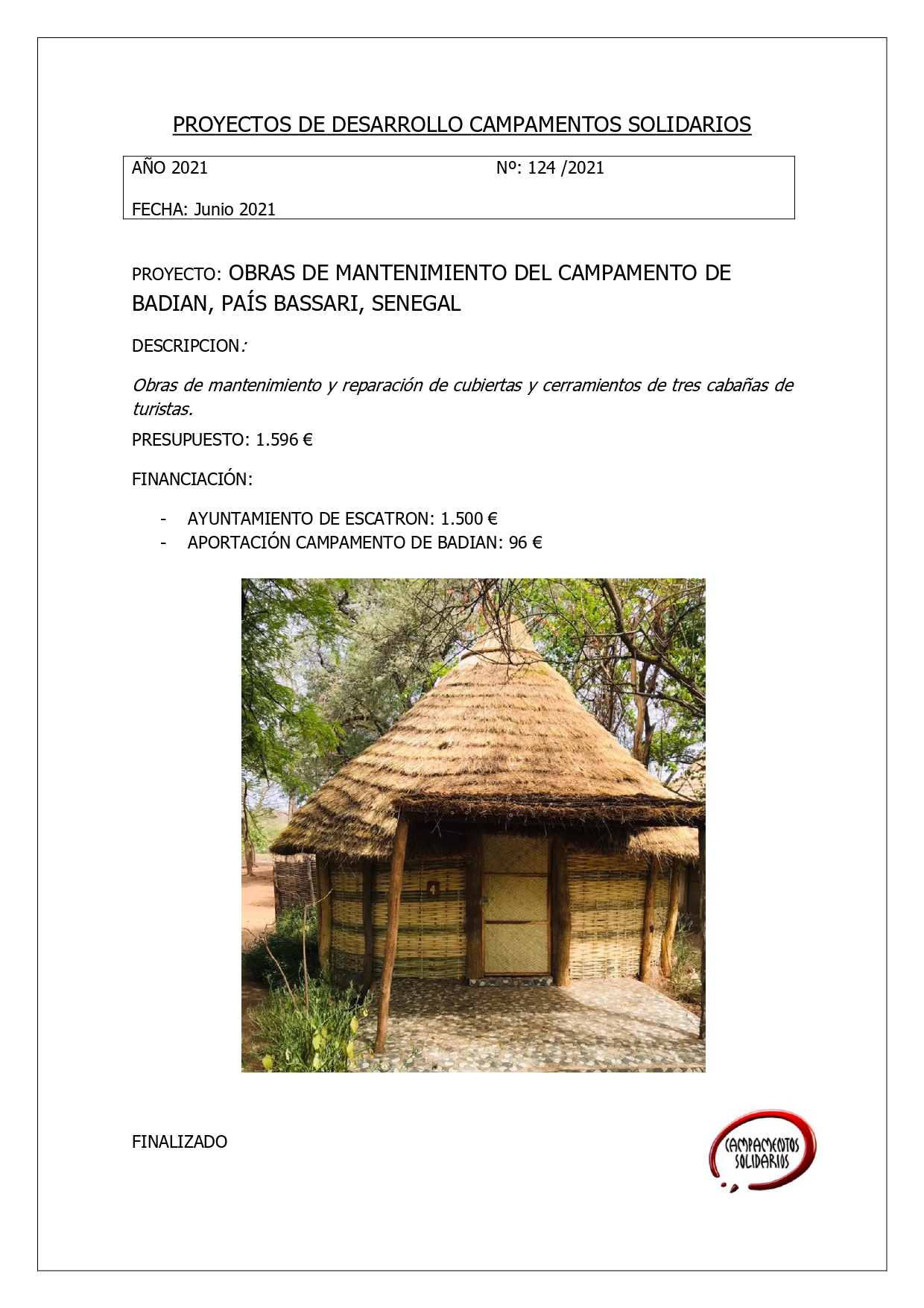 P 99: Obras de mejoras y ampliación del Campamento de Badian, País Bassari, Senegal[+]