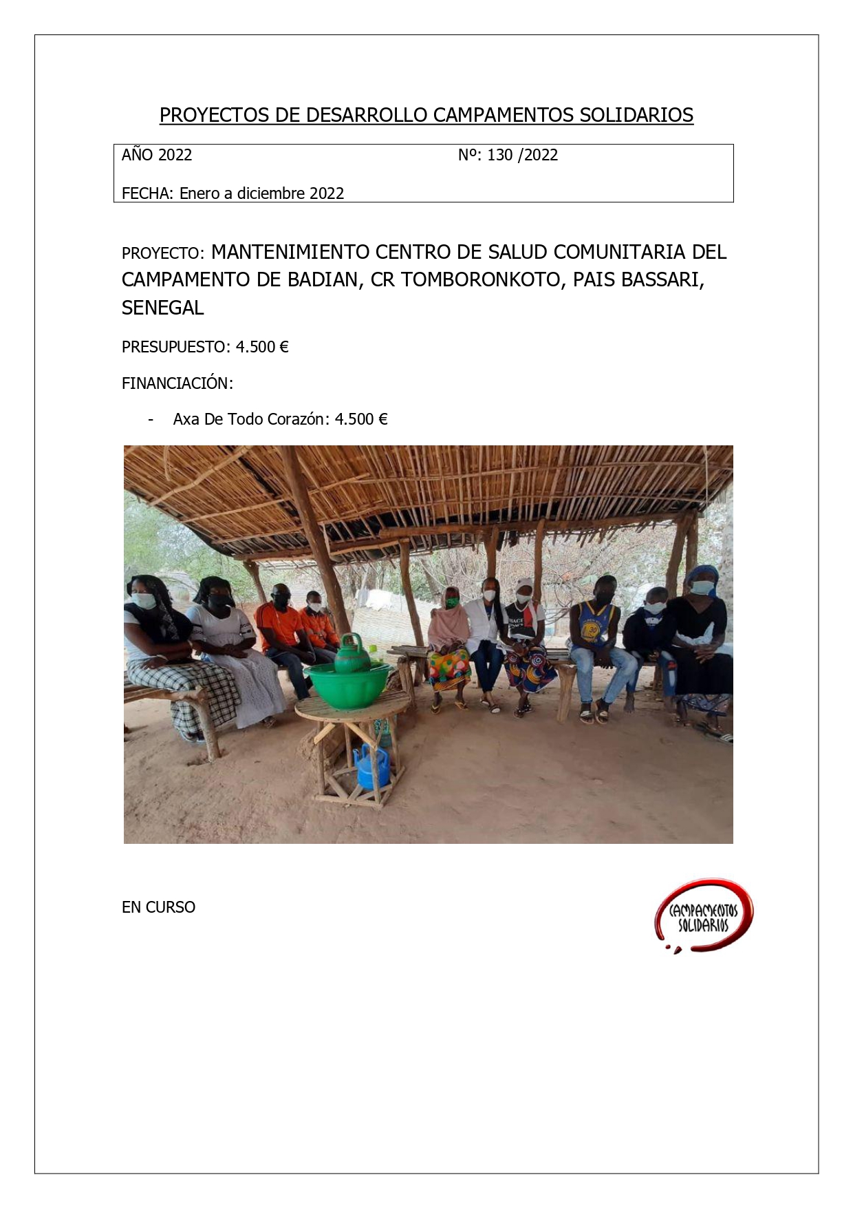 P 130: Mantenimiento del Centro de Salud Comunitaria del Campamento de Badian, País Bassari, Senegal [+]