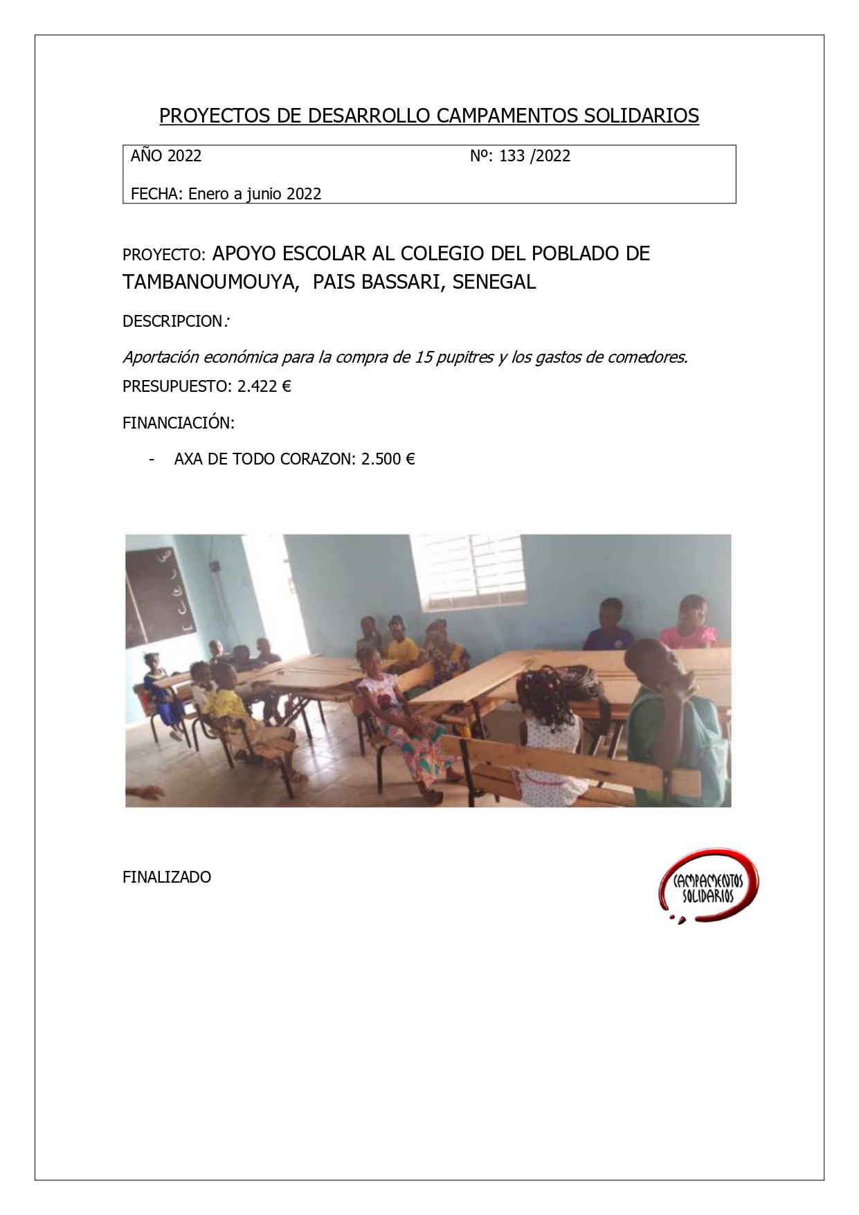 P 133: Apoyo escolar para la escuela de Tambanoumouya, País Basari, Senegal [+]