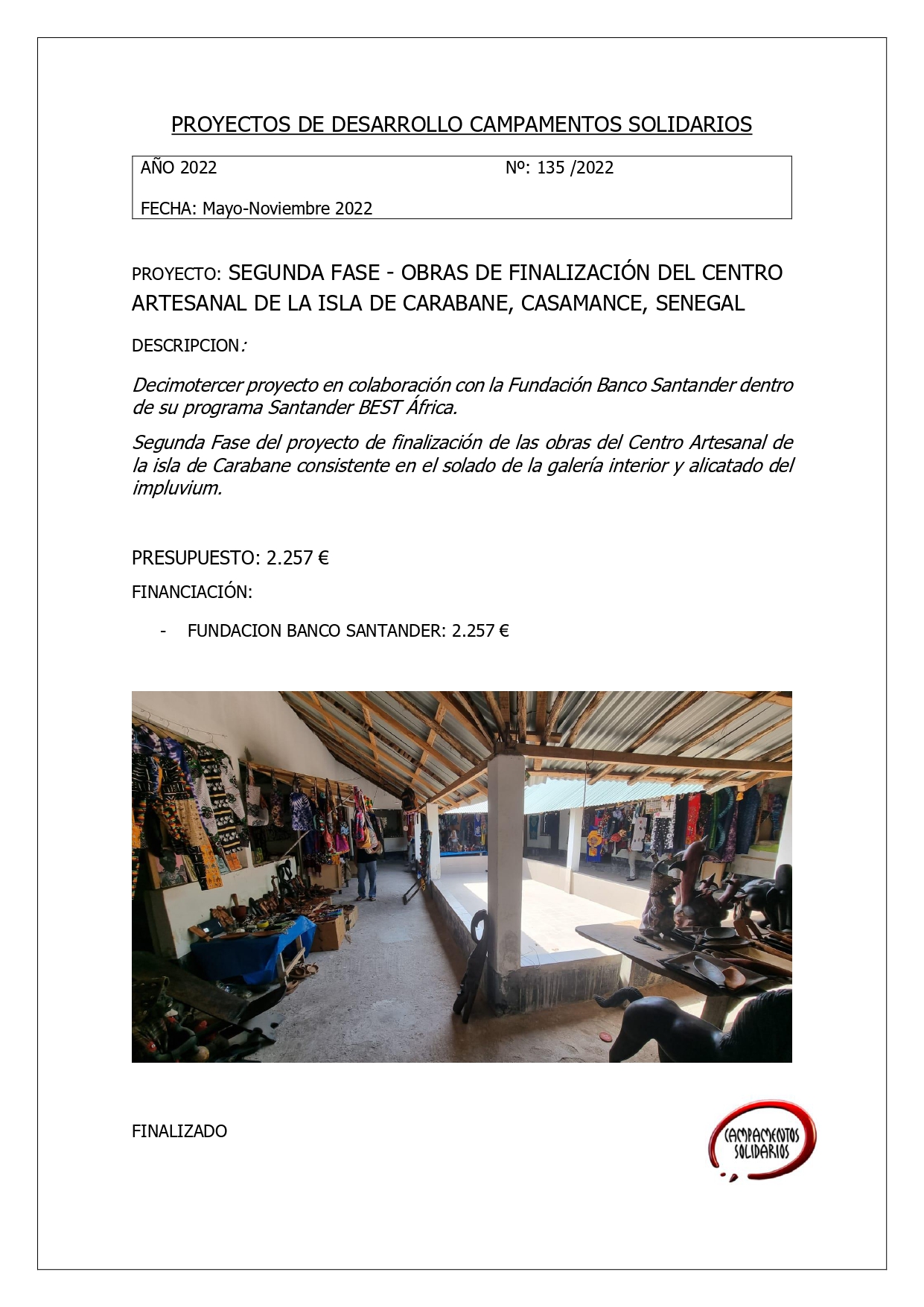 P 135: Segunda fase - Finalización de las obras del Centro Artesanal de la isla de Carabane, Casamance, Senegal [+]