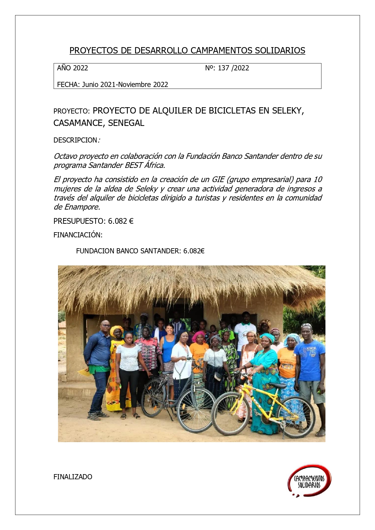 P 137: Proyecto de alquiler de bicicletas en Seleky, Casamance, Senegal [+]