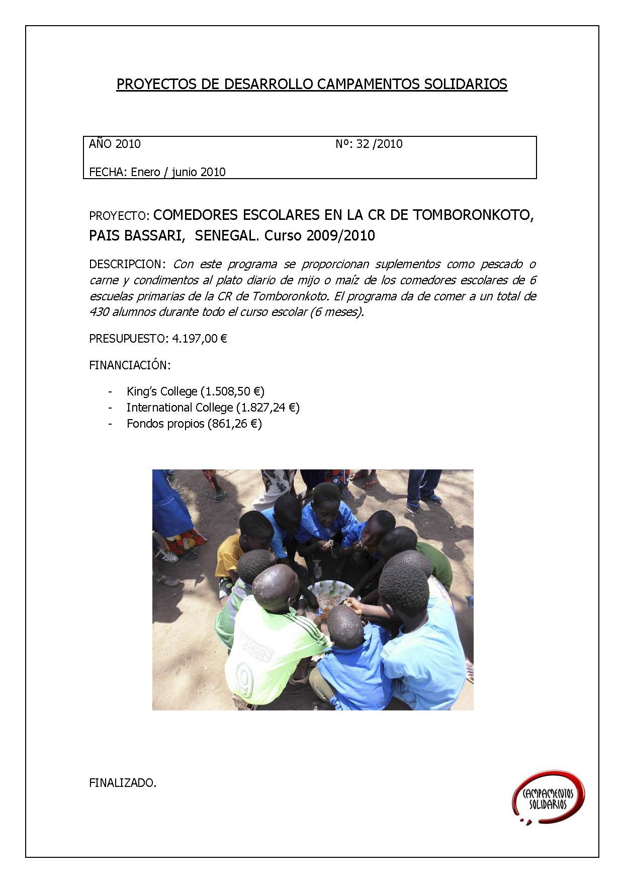 P 32: Comedores escolares en la Comunidad Rural de Tomboronkoto, País Bassari, Senegal. Curso 2009/2010 [+]