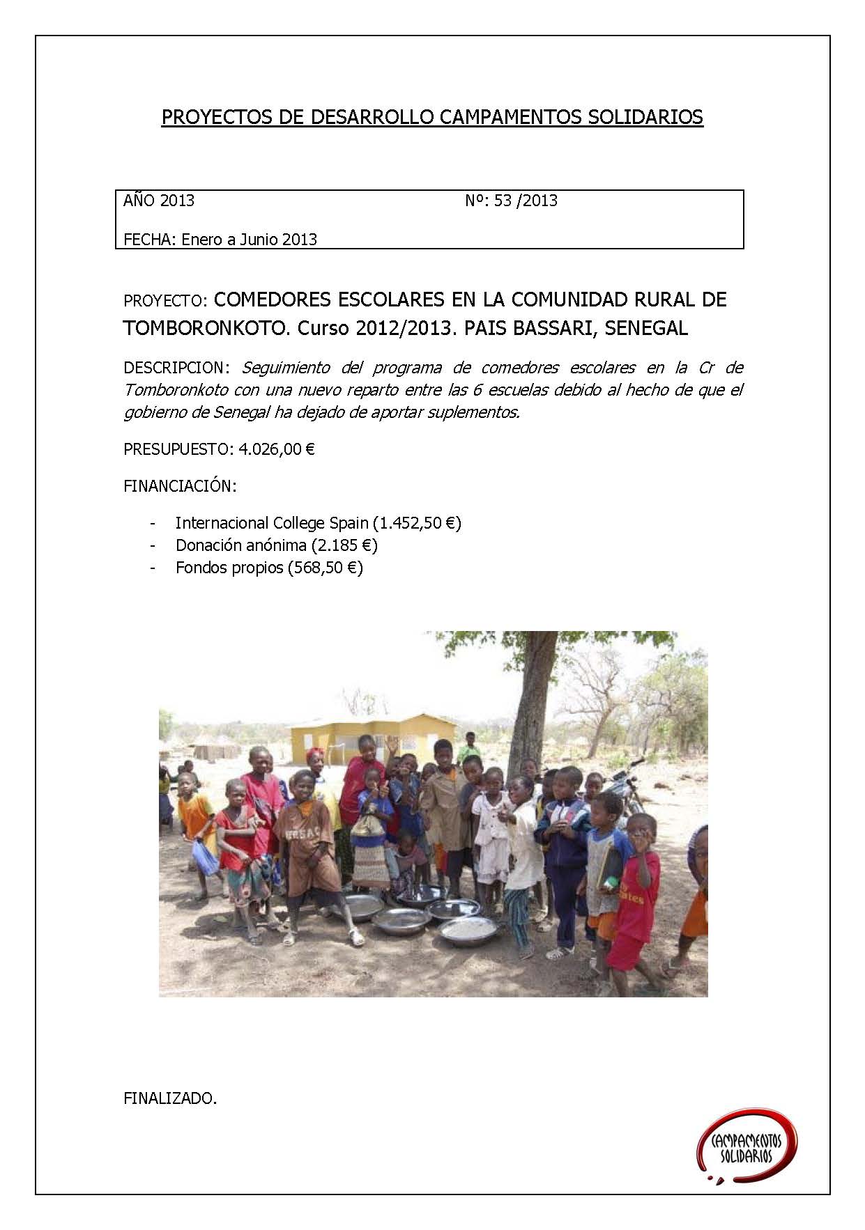 P 53: Comedores escolares en Comunidad Rural de Tomboronkoto, País Bassari, Senegal. Curso 2012/2013 [+]