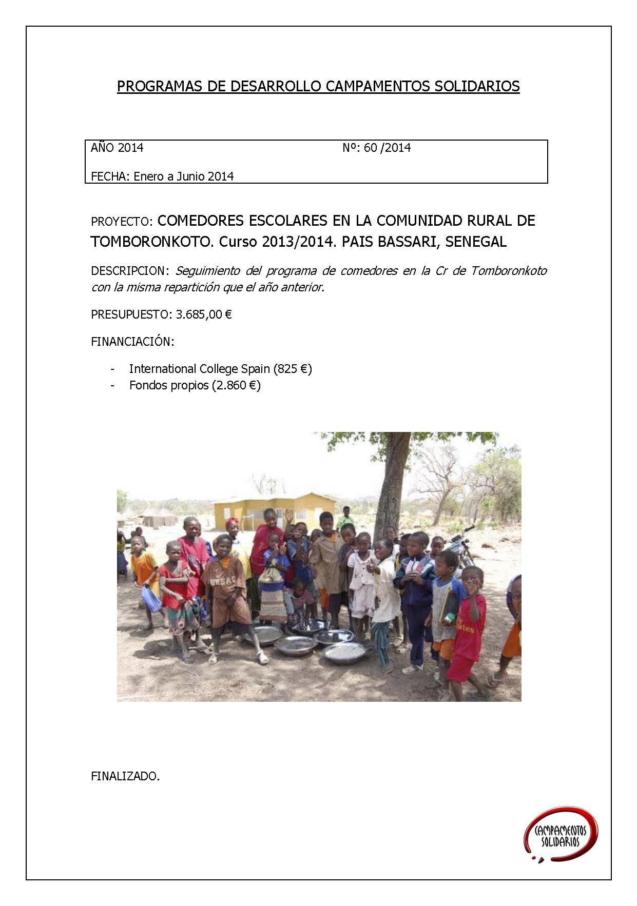 P 60: Comedores escolares en Comunidad Rural de Tomboronkoto, País Bassari, Senegal. Curso 2013/2014 [+]