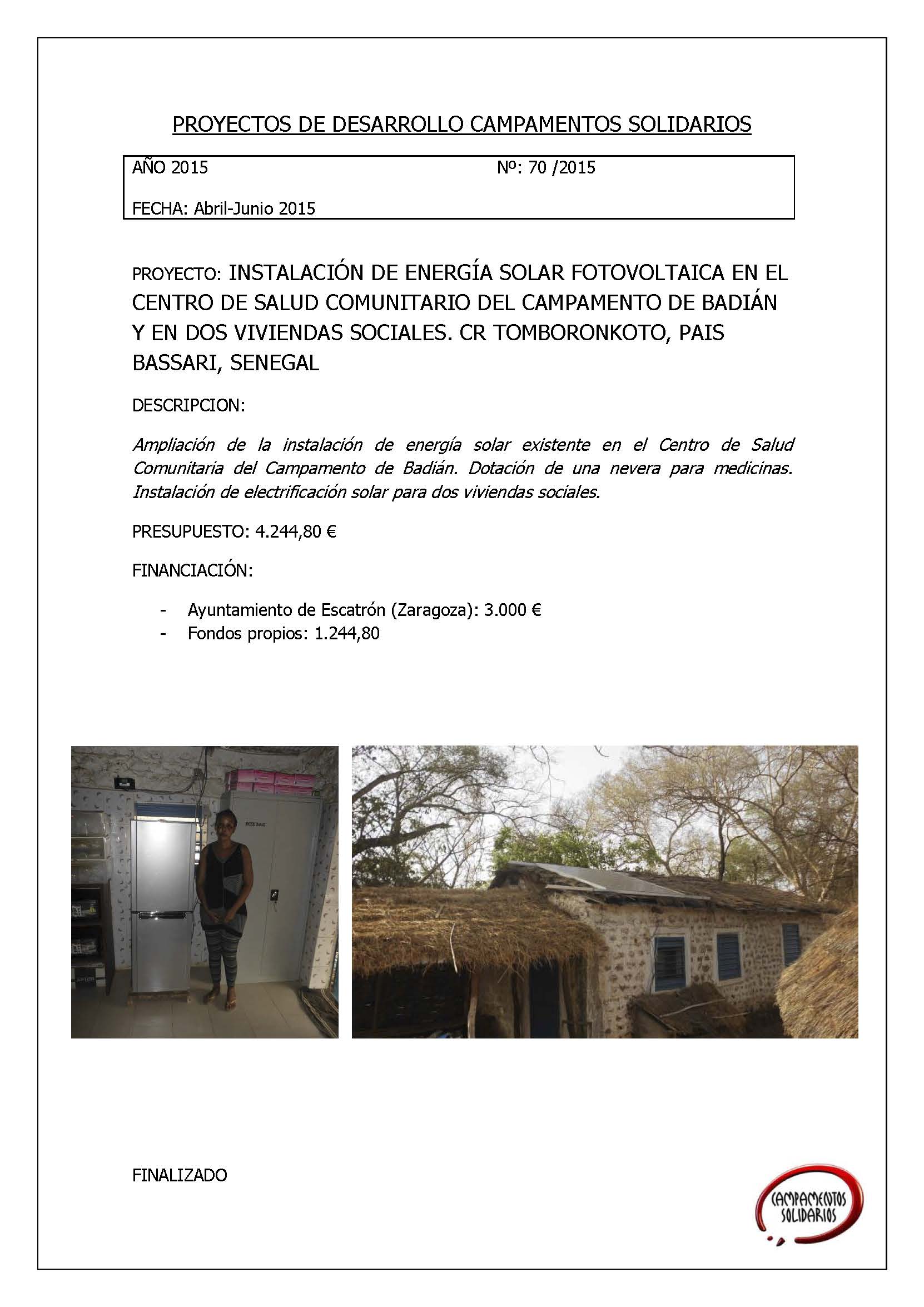 P 70: Energía solar en el Centro de Salud y viviendas del Campamento de Badian, País Bassari, Senegal [+]