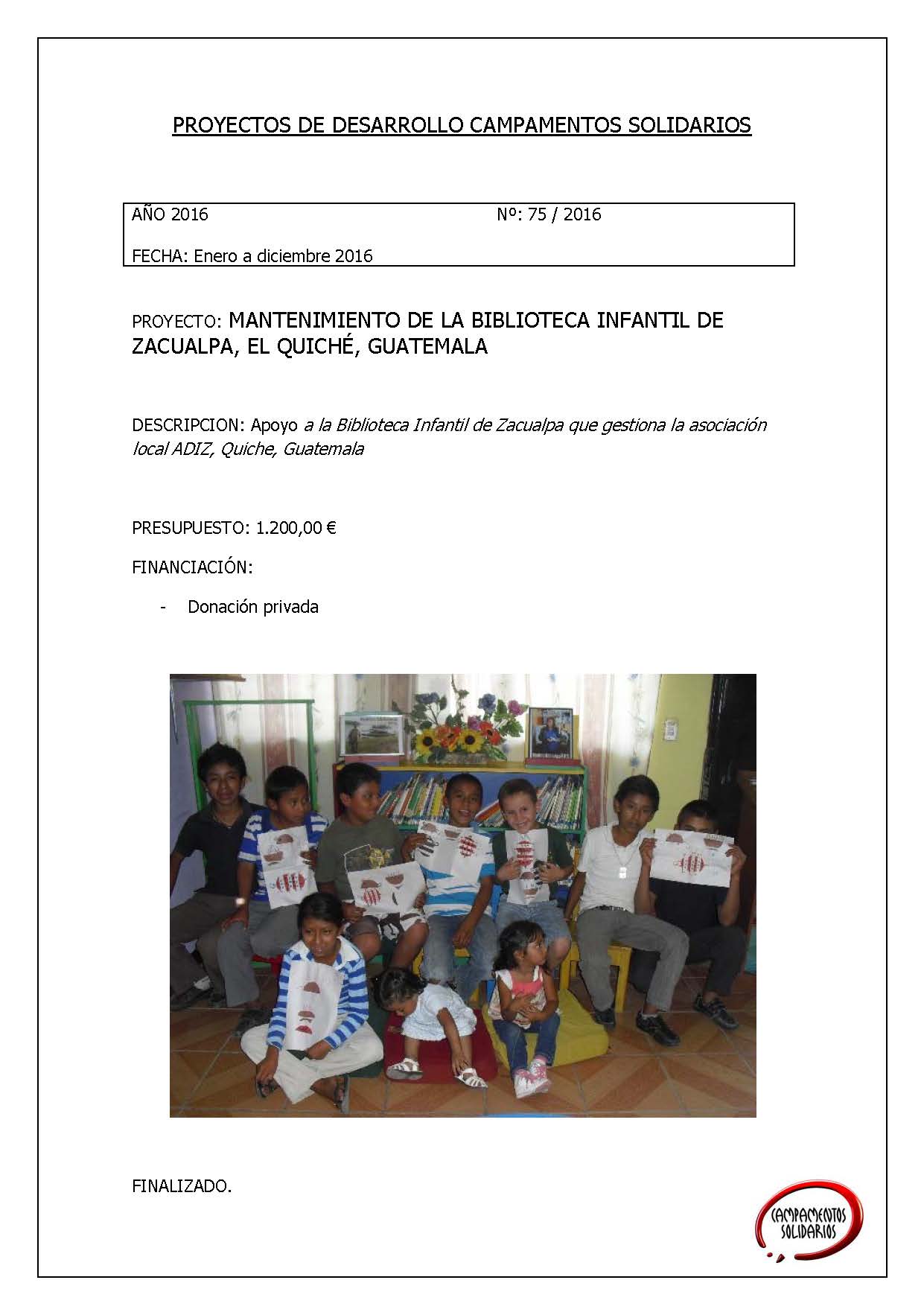 P 75: Mantenimiento de la Biblioteca Infantil de Zacualpa, El Quiché, Guatemala [+]