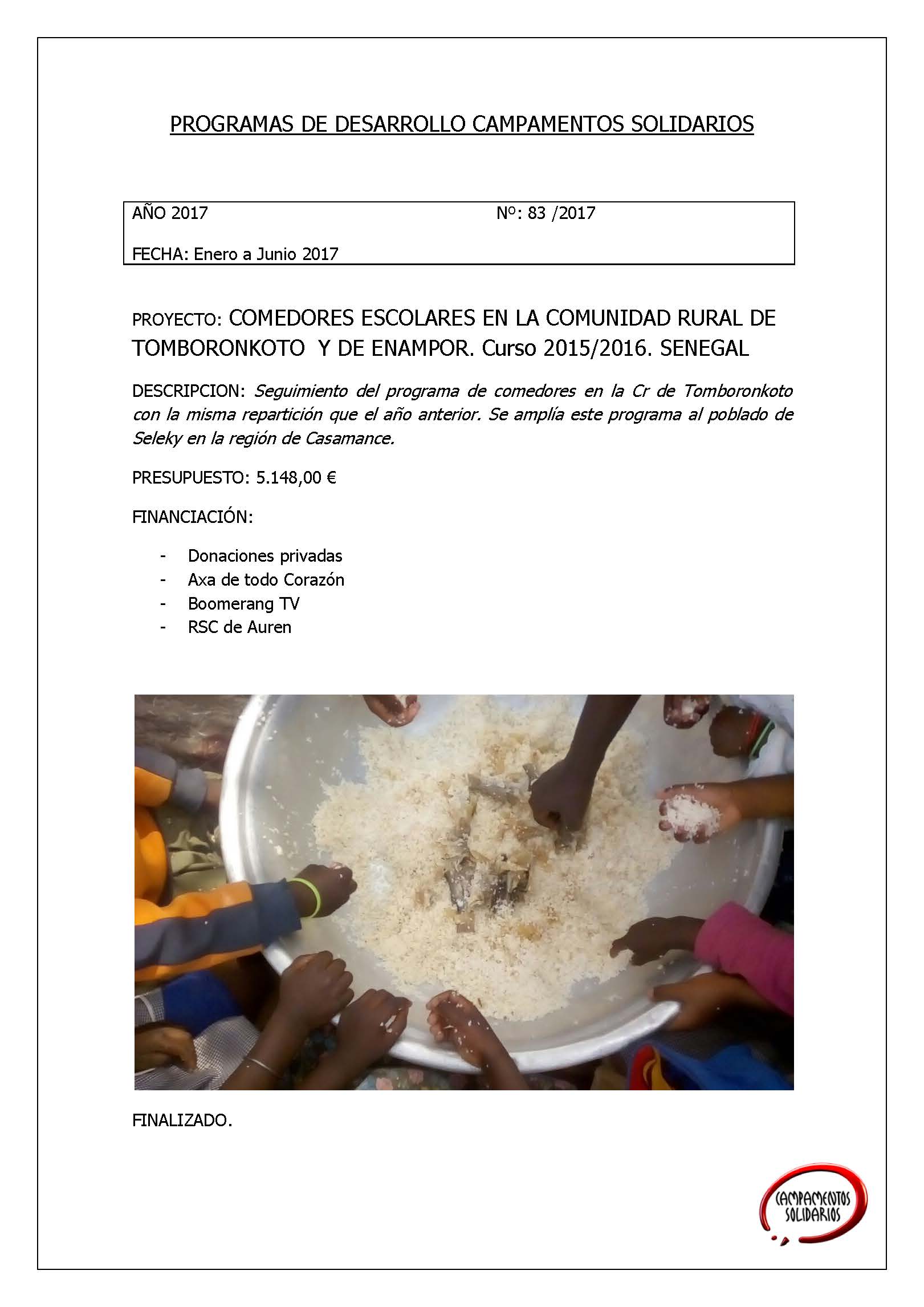 P 83: Comedores escolares en Comunidad Rural de Tomboronkoto, País Bassari, Senegal. Curso 2016/2017 [+]