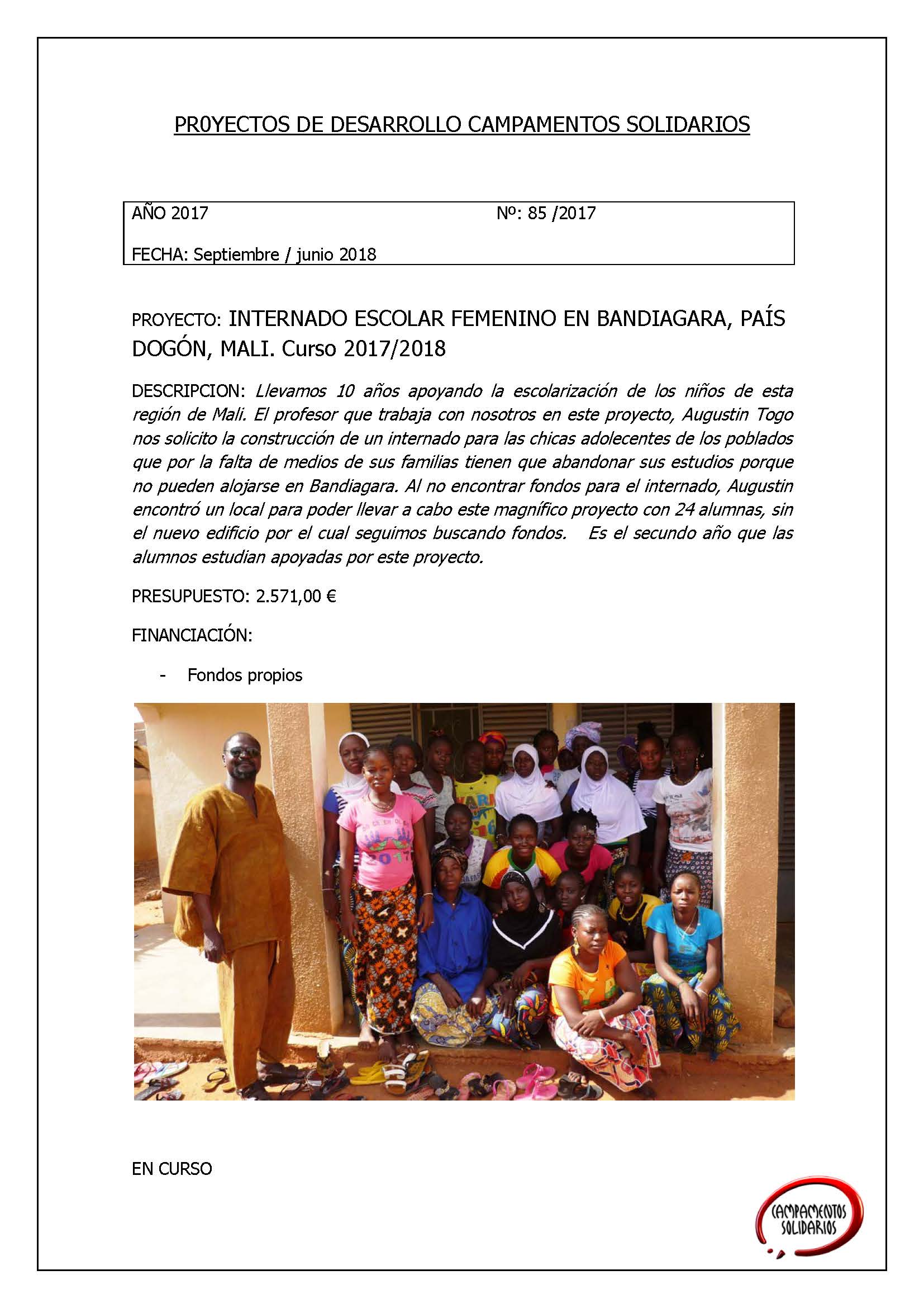 P 85: Internado Escolar Femenino en Bandiagara, País Dogón, Mali. Curso 2016/2017 [+]