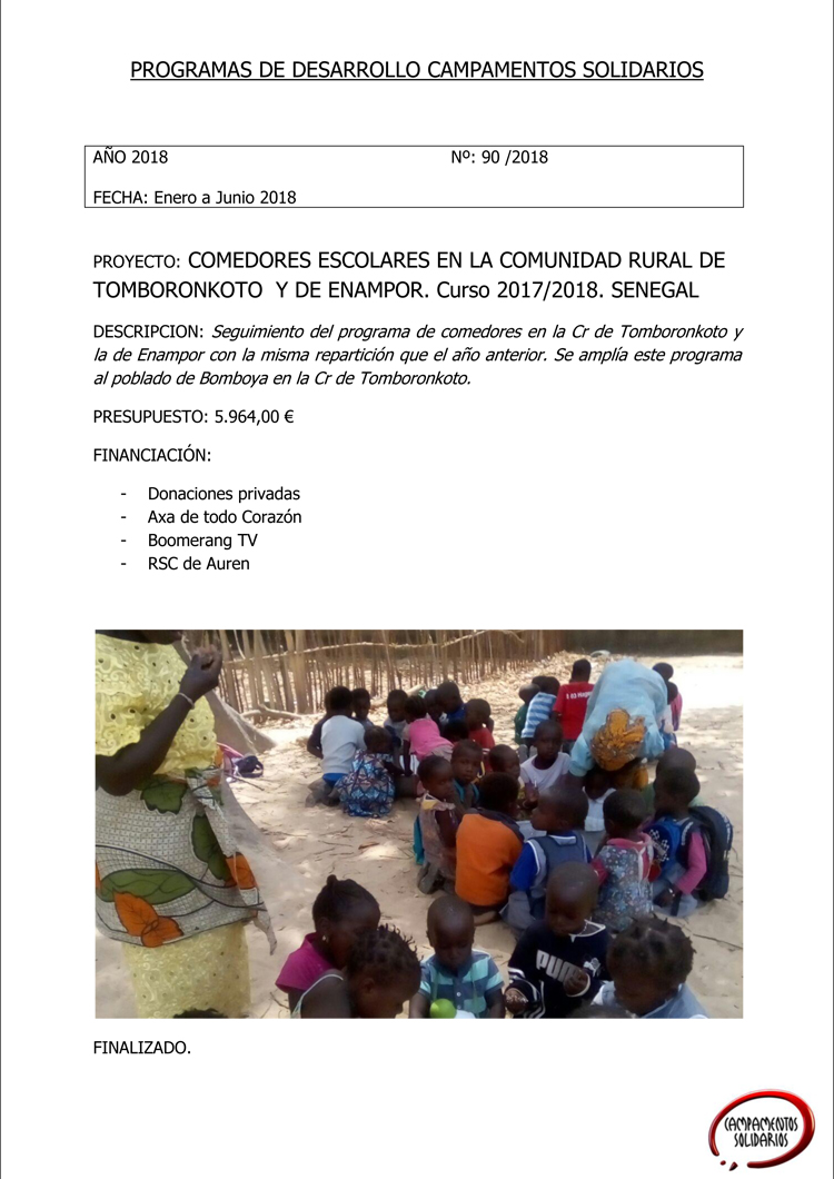P 90: Comedores escolares en Comunidad Rural de Tomboronkoto, País Bassari, Senegal. Curso 2017/2018 [+]