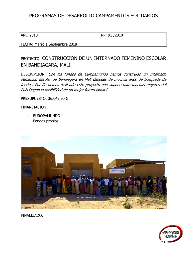 P 92: Construcción Internado Escolar Femenino en Bandiagara, País Dogón, Mali. Curso 2017/2018[+]
