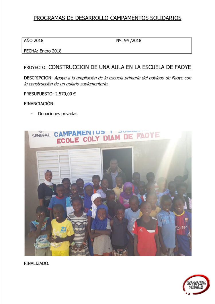 P 94: Construcción de una aulario para la escual primaria de Faoye, Senegal[+]