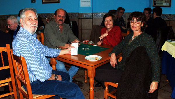 Después del éxito del primer campeonato, volvimos a repetir la experiencia el pasado mes de marzo. También en el Asador Sotero de Madrid y con aforo completo. Con una perfecta organización por parte de Gonzalo Martínez de Haro y Juan Baez, después de mas de cinco horas de juego, volvió a ganar la pareja compuesta por Pipo y Jose Luís, demostrando que son unos fenómenos y que no hay quien los gane. En la foto Gonzalo, Cuca, Perico y Chuchi durante un momento del campeonato.