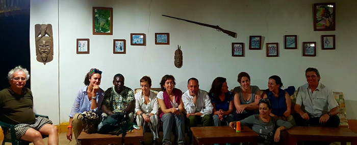 En la foto los viajeros con Juan Báez nuestro Secretario en el Campamento de Faoye. El grupo pasó la fiesta de año nuevo entre los Diolas de Casamance. ( ver más imágenes de la fiesta)