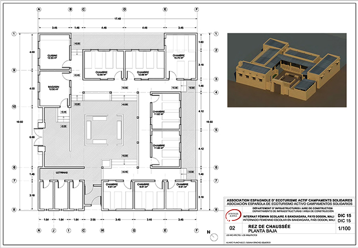 CONSTRUCCIÓN DEL INTERNADO FEMENINO ESCOLAR DE BANDIAGARA, MALIEl internado está formado por 5 edificios de una altura que contienen 8 dormitorios con 32 camas repartidas entre ellos, una cocina, un almacén y 3 letrinas todo ello alrededor de un patio interior de reunión y descanso para las alumnas.