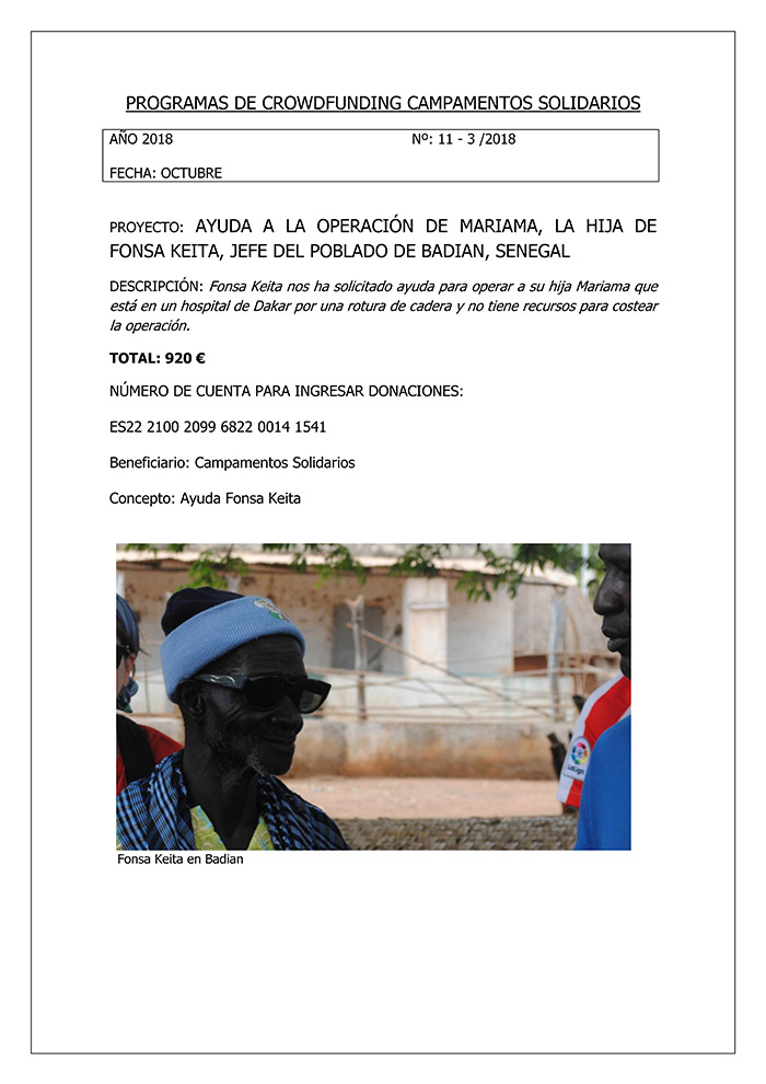C11: Ayuda a la operación quirúrgica de Mariama, la hija de Fonsa Keita, Jefe del poblado de Badian, Senegal