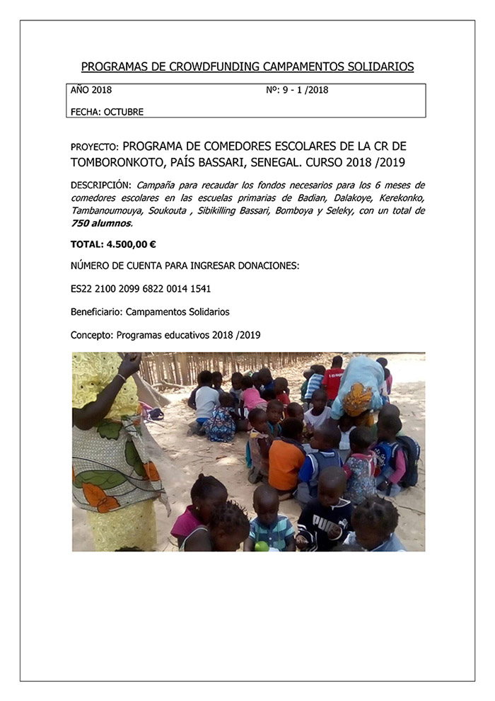 C9: Comedores escolares de la Comunidad Rural de Tomboronkoto, Senegal