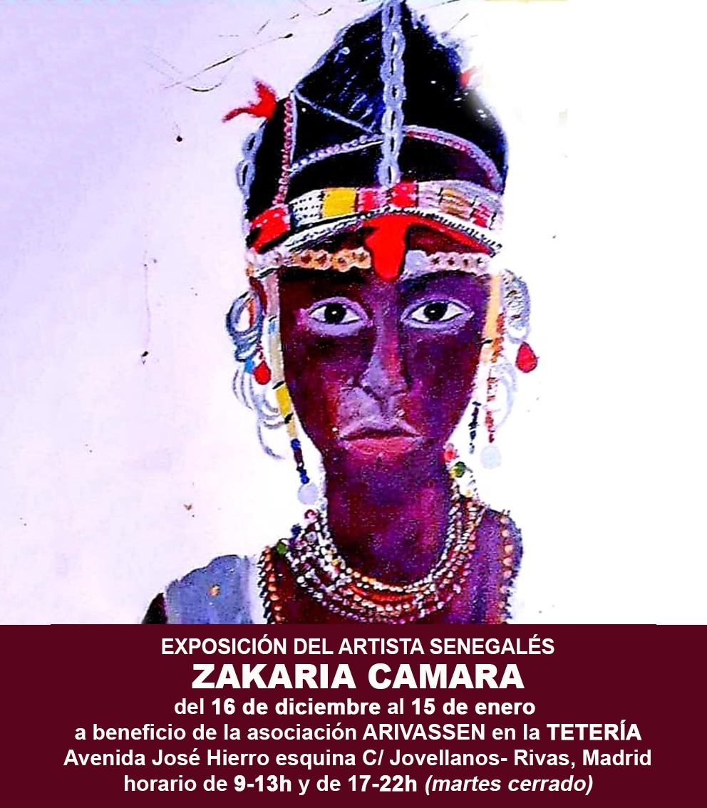 EL PINTOR SENEGALÉS ZAKARIA CAMARA EXPONE POR PRIMERA VEZ EN MADRIDHasta el 15 de enero se pueden ver sus cuadros en la Teteria de Rivas por iniciativa de la Asociación Arivassen.