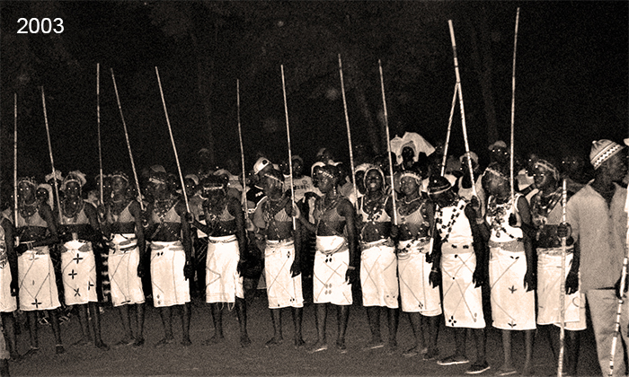 Campamento de Faoye. Después de una buena comida con deliciosos platos locales hubo discursos de agradecimiento por parte de las mujeres emprendedoras beneficiarias con música con calabazas de fondo.